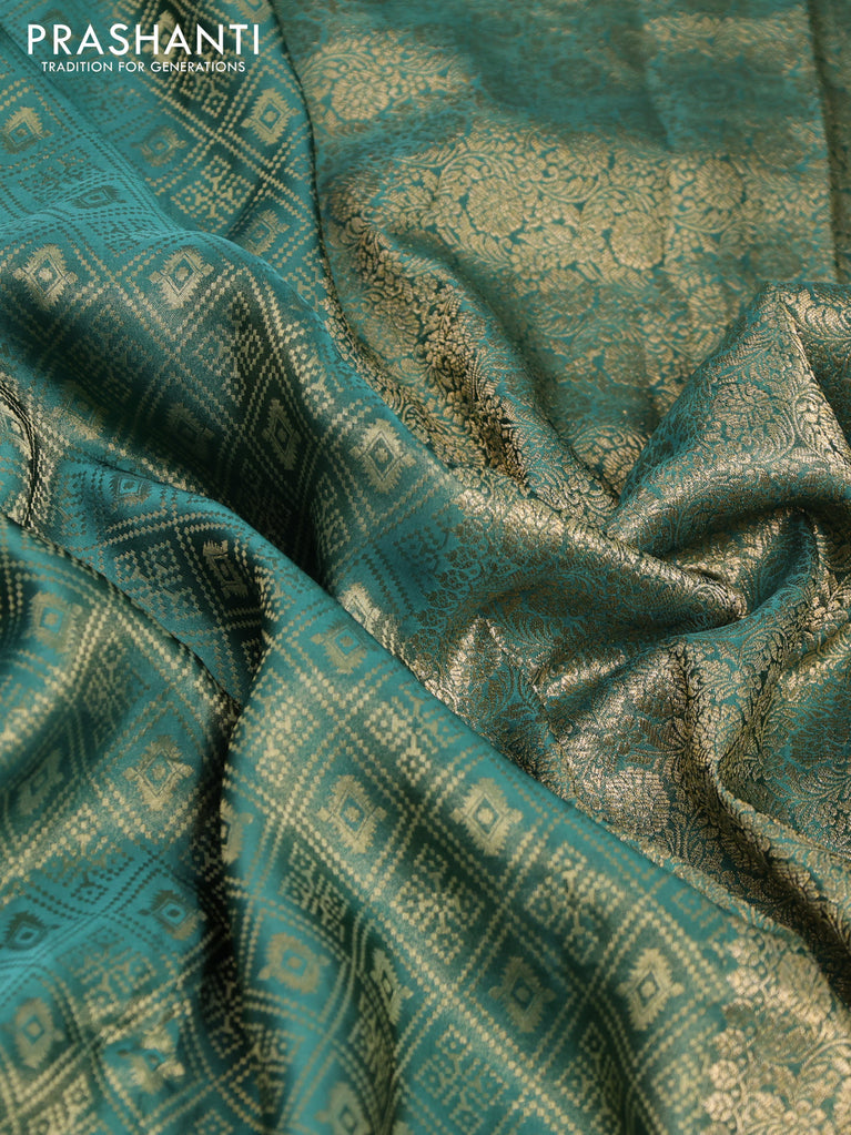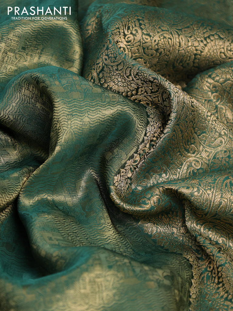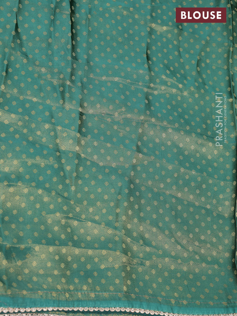 Banarasi semi crepe saree dual shade of peacock blue with allover zari woven brocade weaves and lace work border