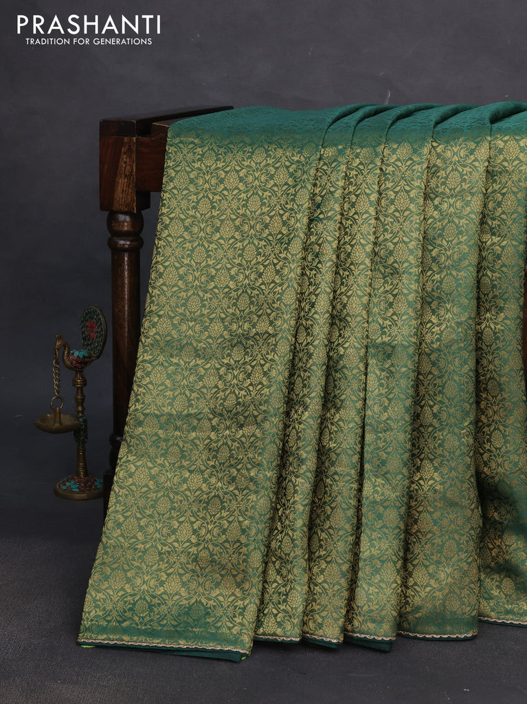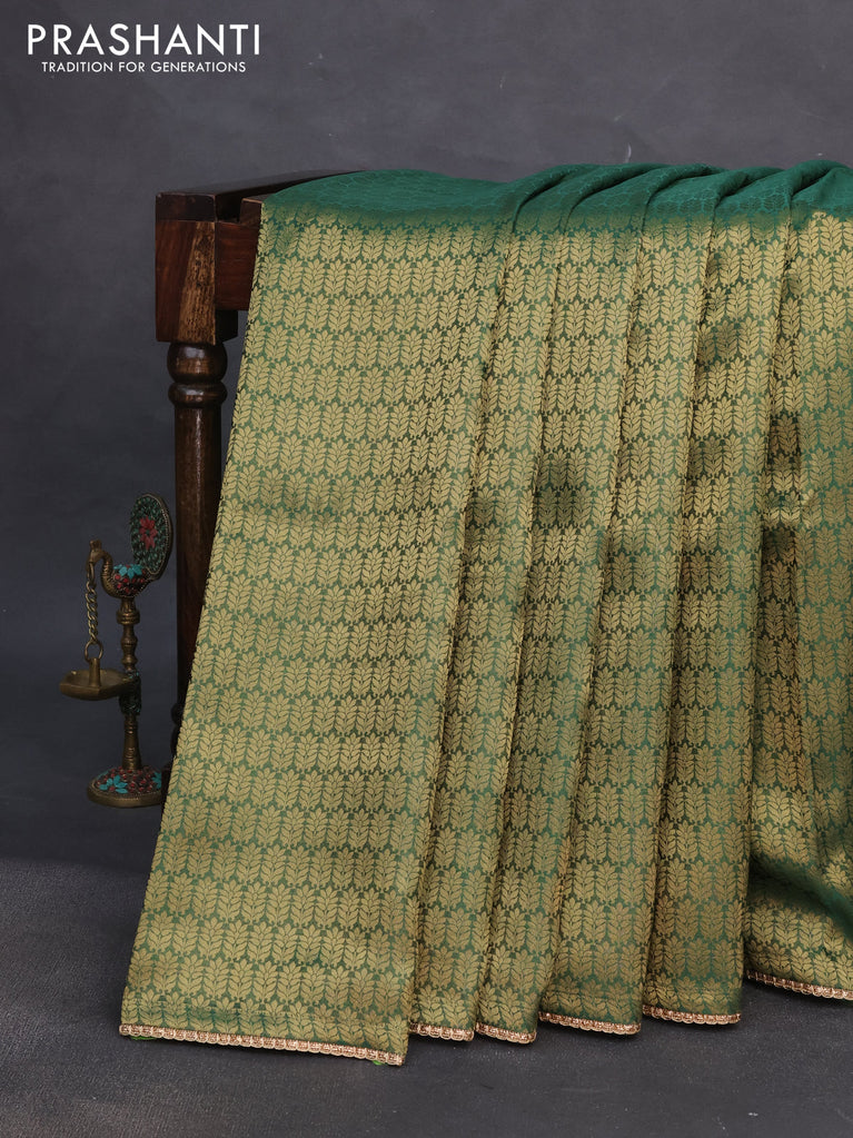 Banarasi semi crepe saree green with allover zari woven brocade weaves and lace work border