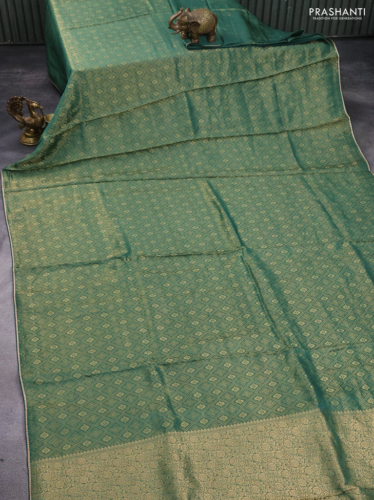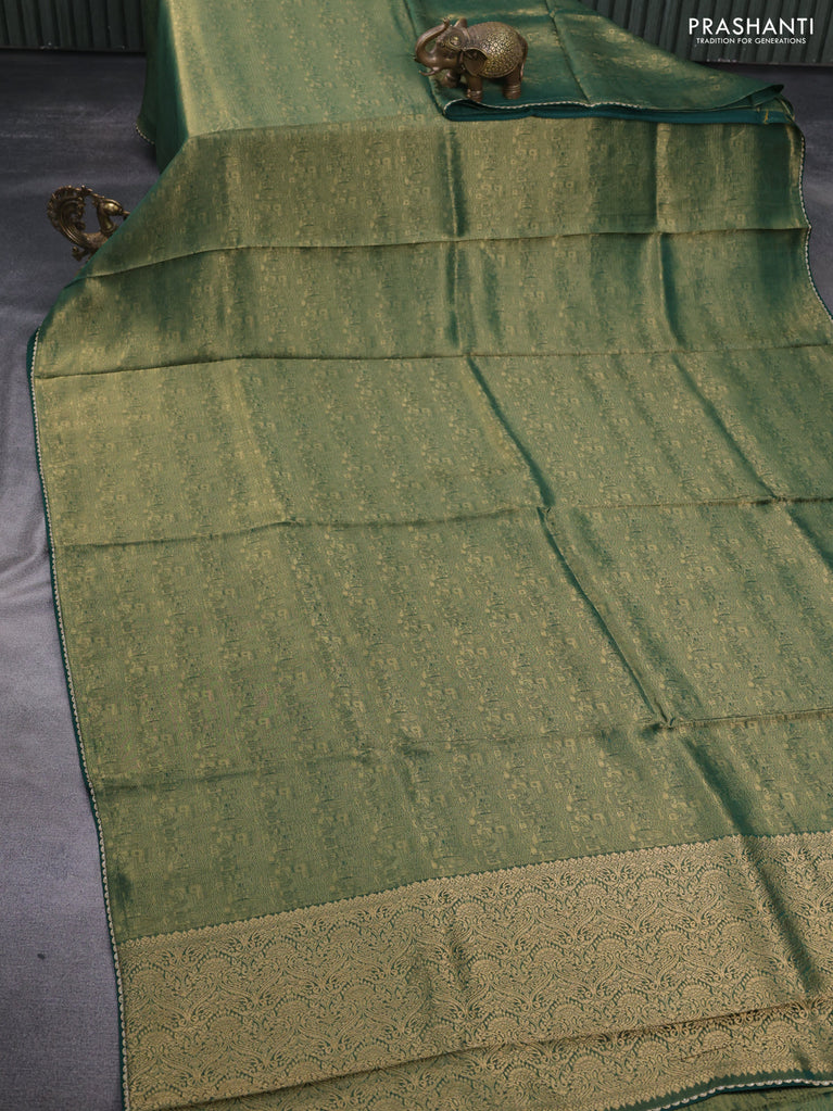 Banarasi semi crepe saree dark mehendi green with allover thread & zari woven brocade weaves and woven border