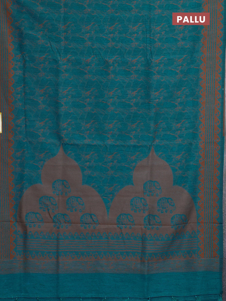 Banarasi semi matka saree teal green with allover thread weaves in borderless style