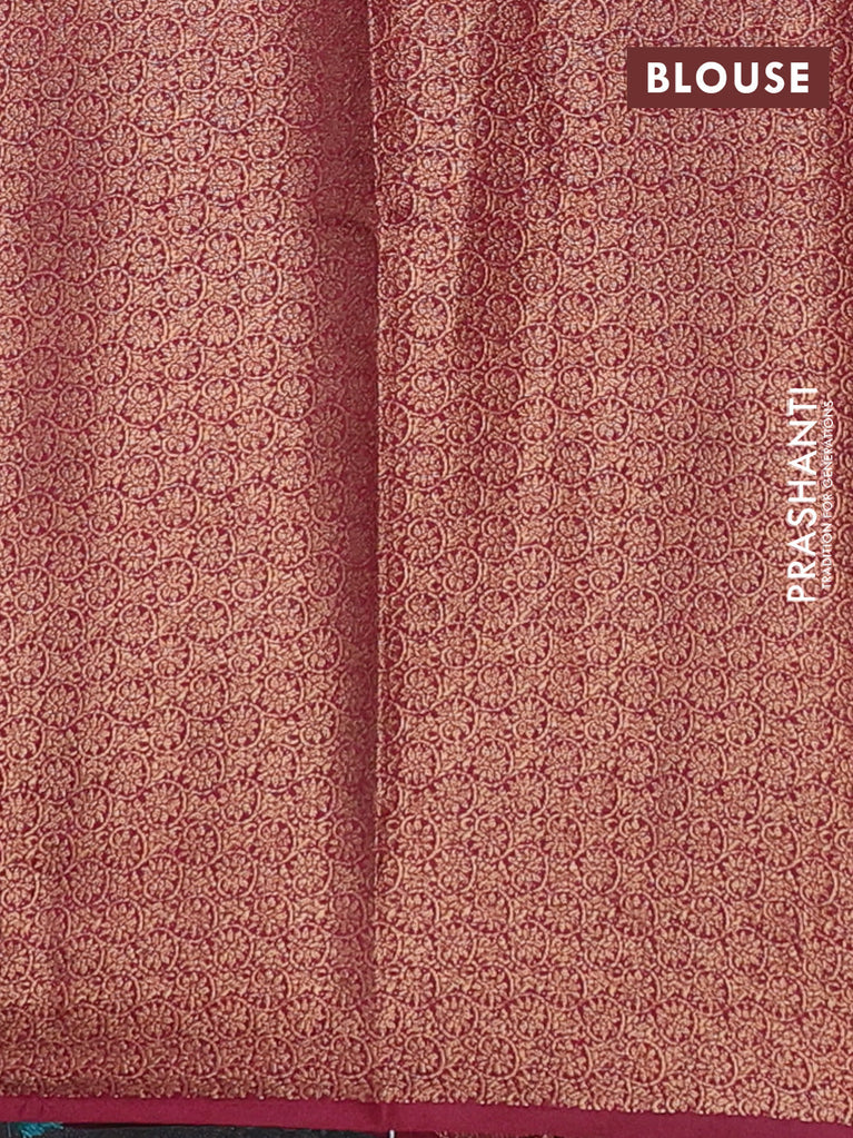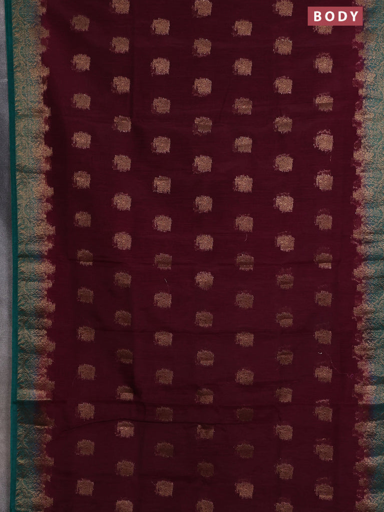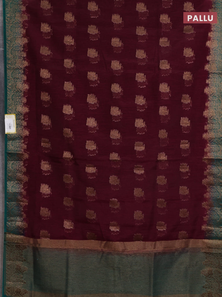 Banarasi semi matka saree teal green and wine shade with thread & zari woven buttas and banarastyle border