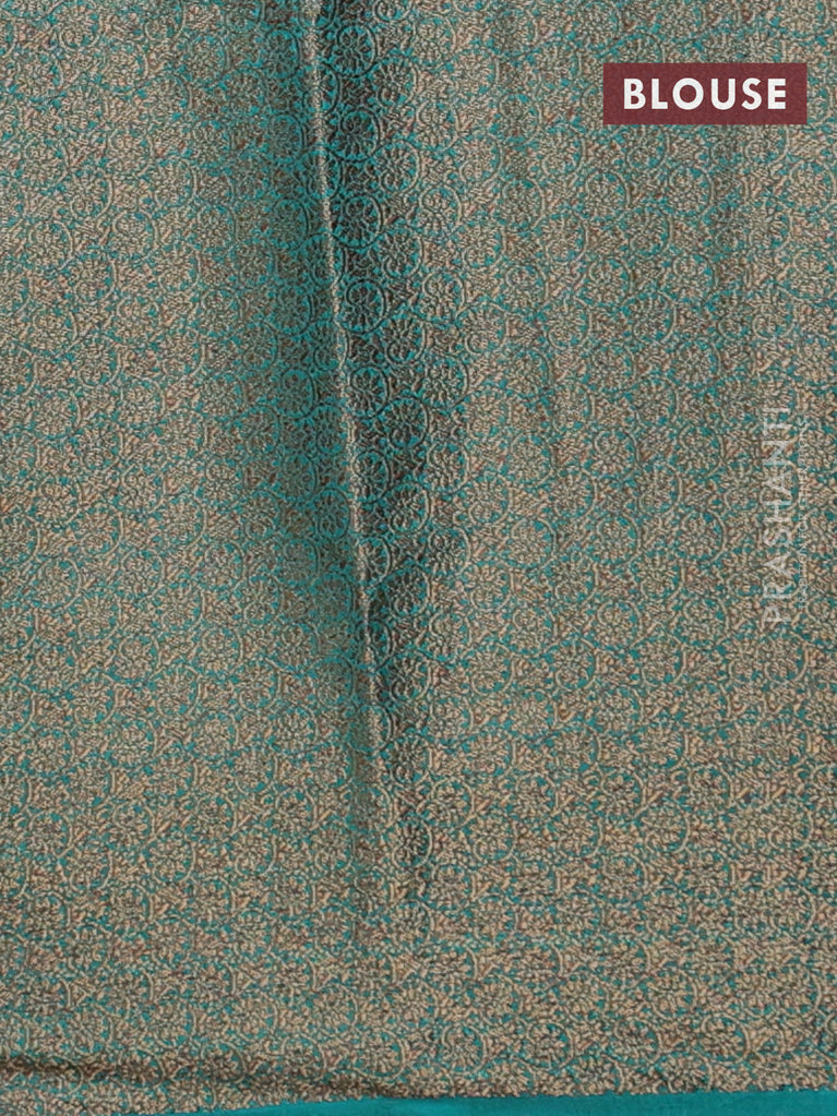 Banarasi semi matka saree teal green shade with allover thread weaves in borderless style