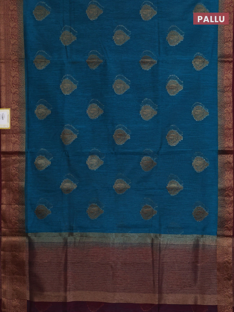 Banarasi semi matka saree teal blue and wine shade with thread & zari woven buttas and banarasi style border