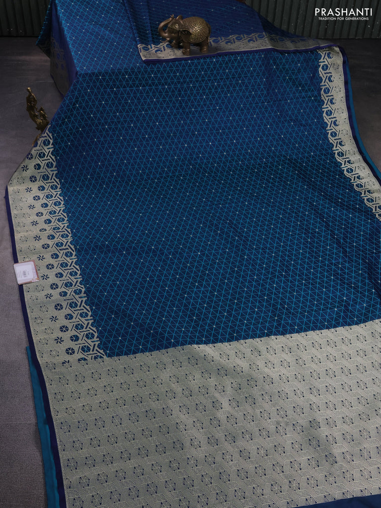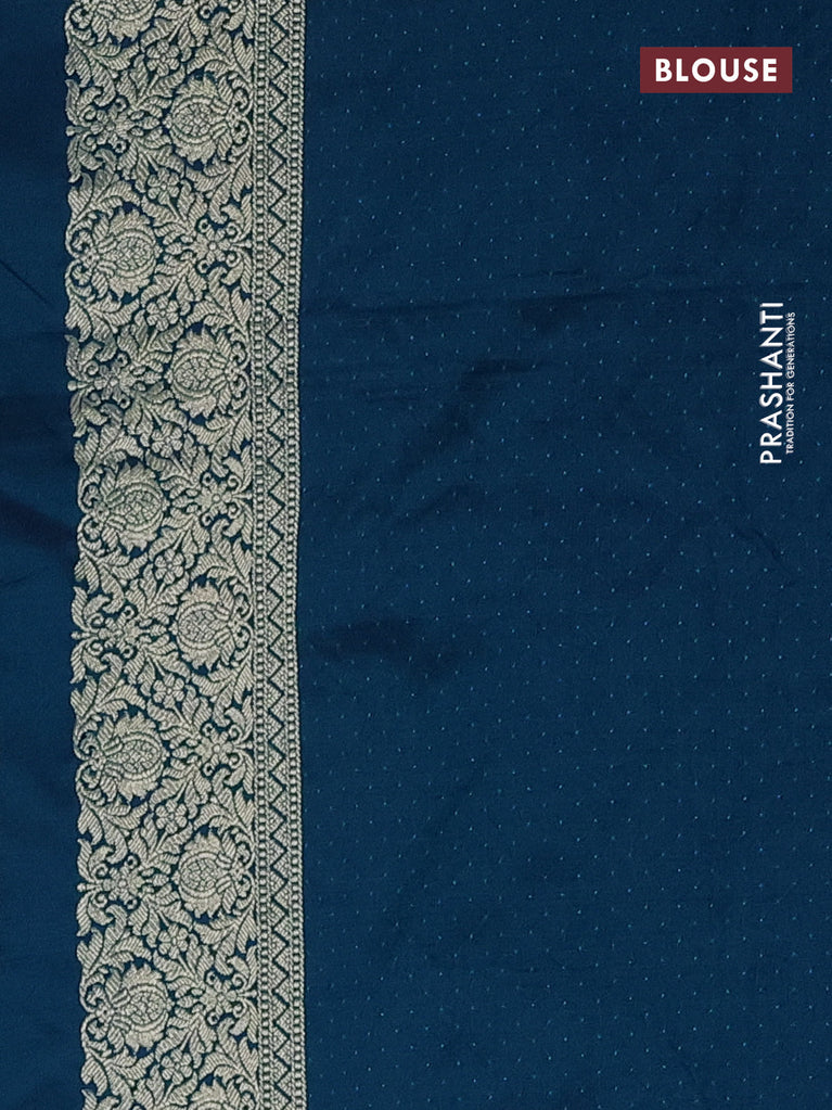 Banarasi semi matka saree teal blue with allover thread weaves in borderless style