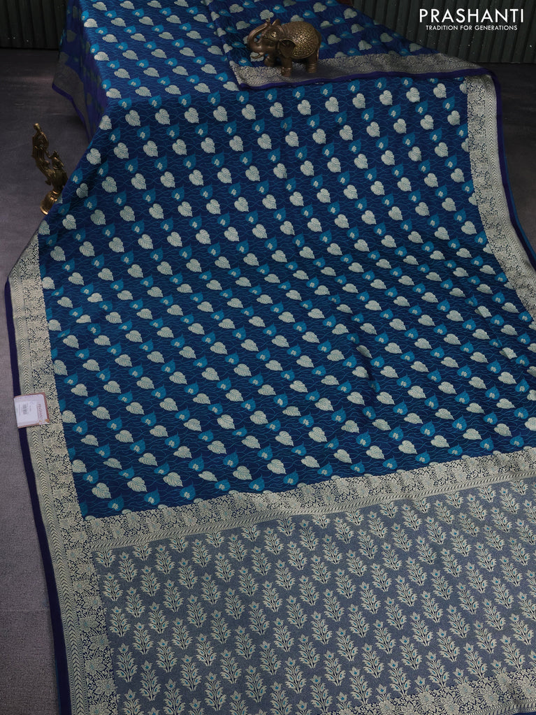 Banarasi semi mushru silk saree dual shade of blue and teal green with allover thread & zari weaves and zari woven border