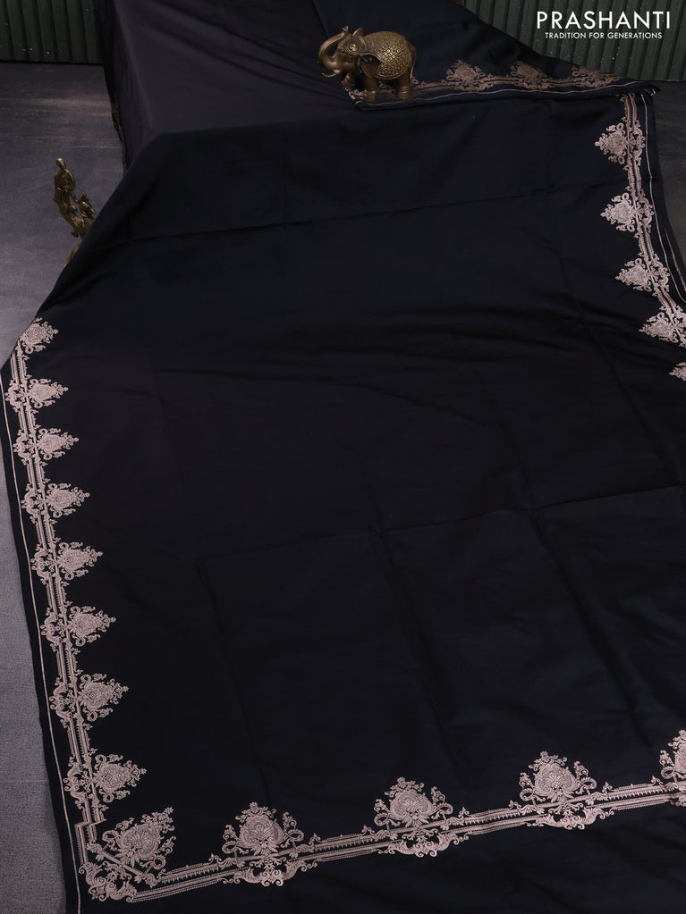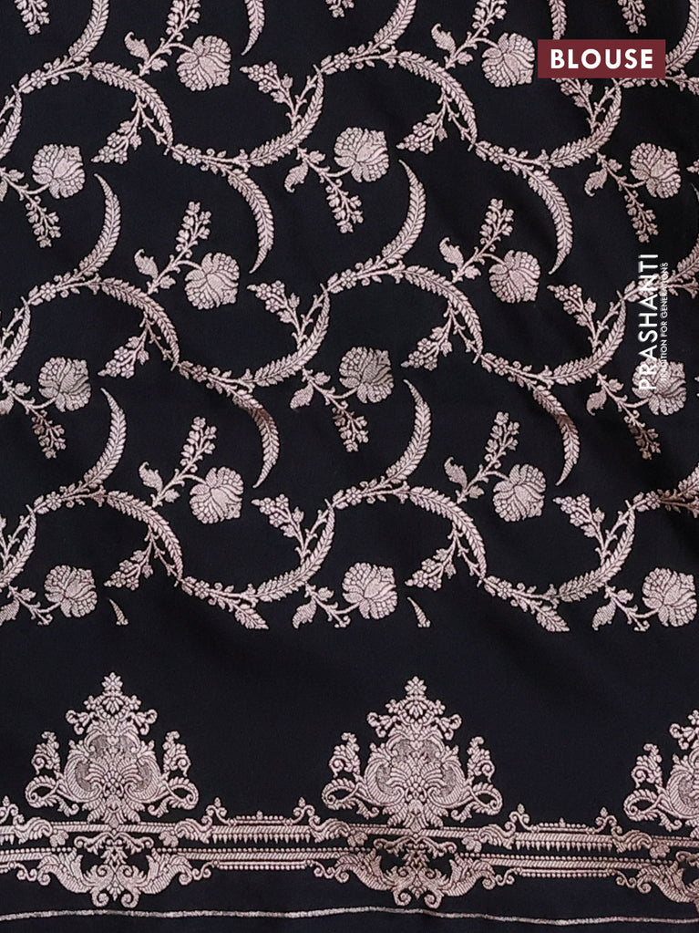 Banarasi semi mushru silk saree black with plain body and zari woven border