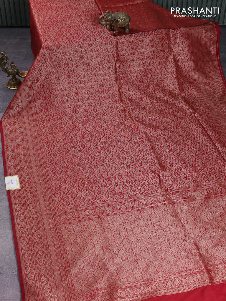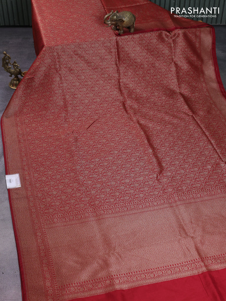 Banarasi semi silk saree maroon with allover thread & zari woven butta weaves and woven border