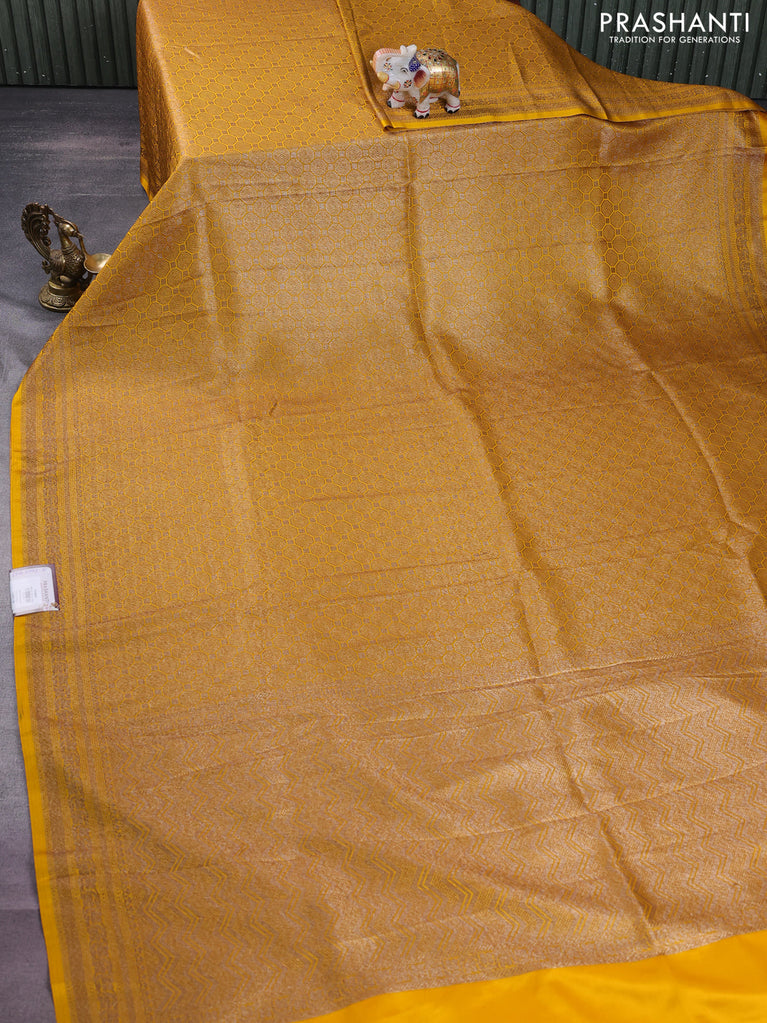 Banarasi semi silk saree mustard yellow with allover thread & zari weaves and woven border