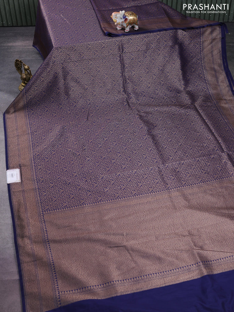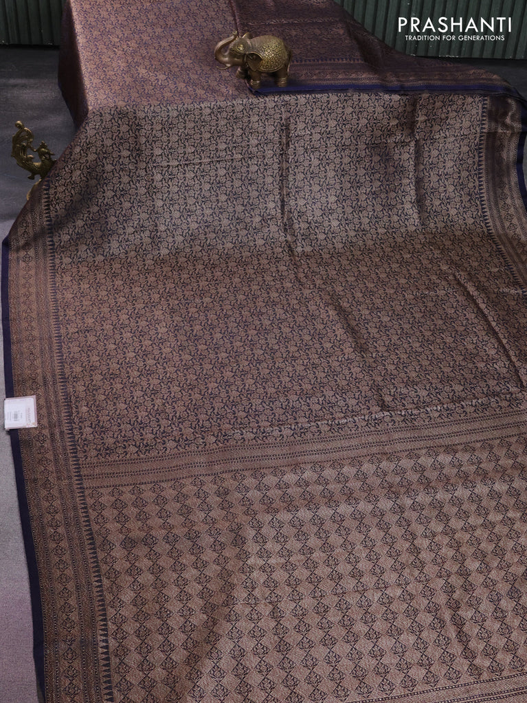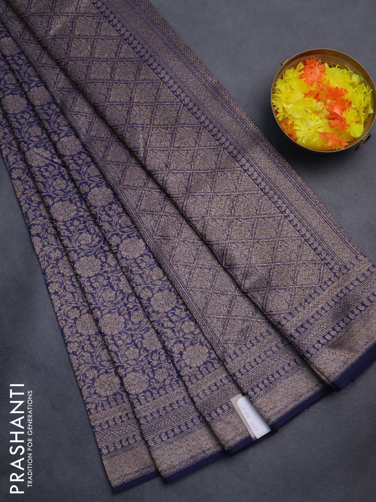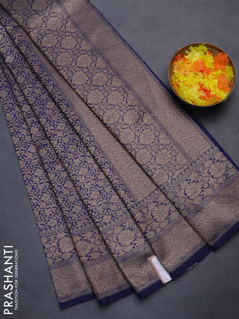 Banarasi semi silk saree navy blue with allover thread & zari weaves and woven border