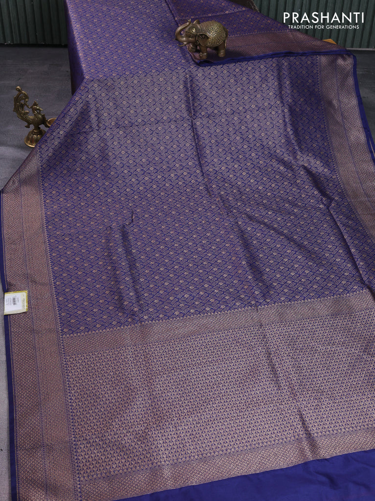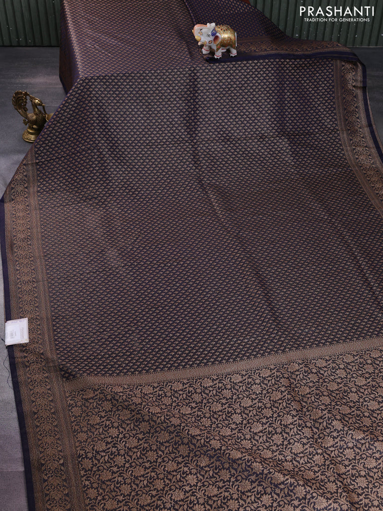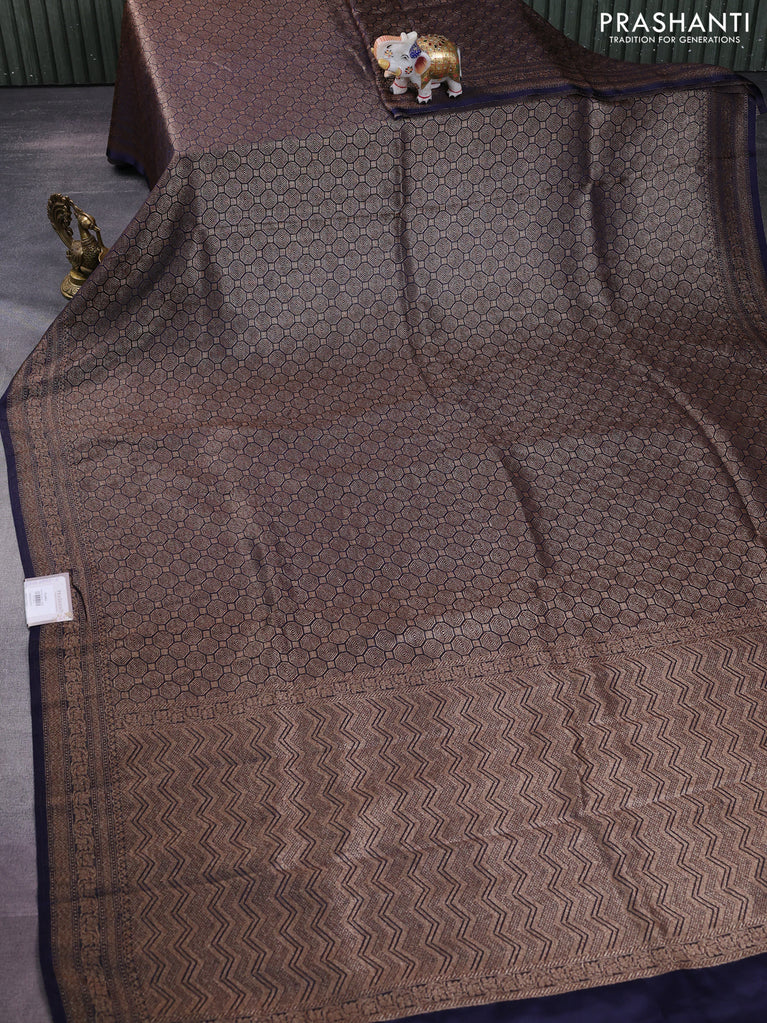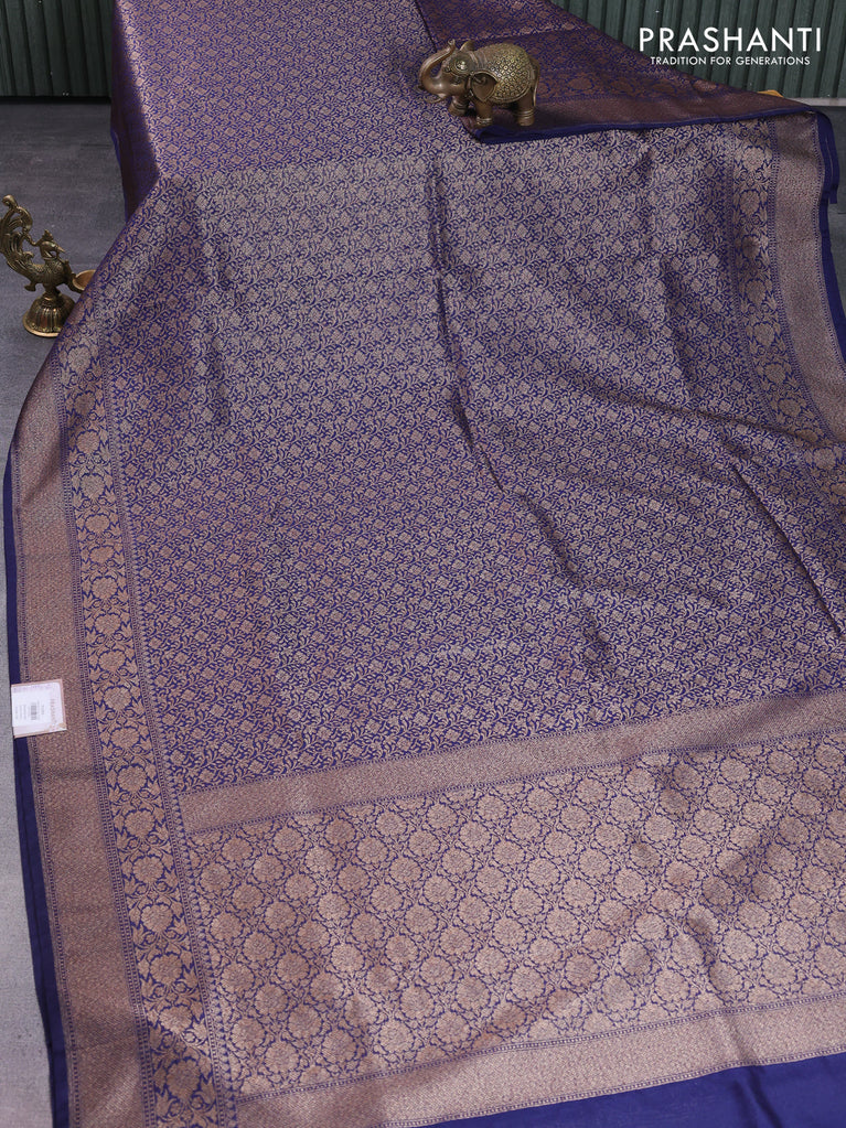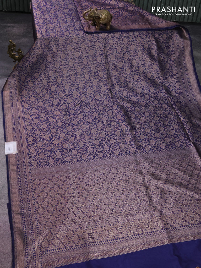 Banarasi semi silk saree navy blue with allover thread & zari weaves and woven border