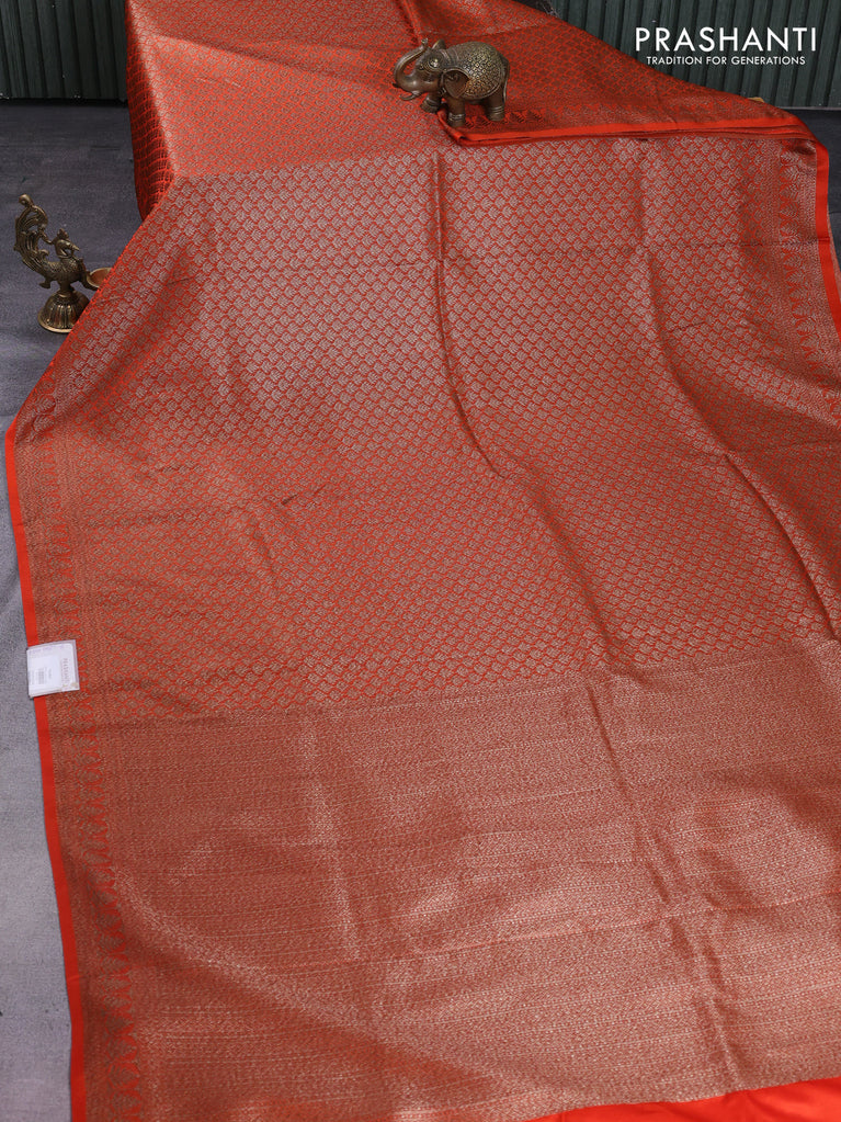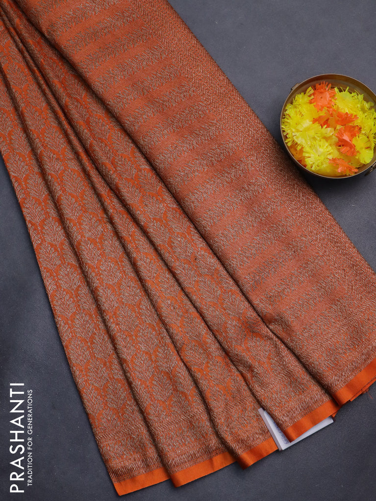 Banarasi semi silk saree orange with allover thread & zari weaves and woven border