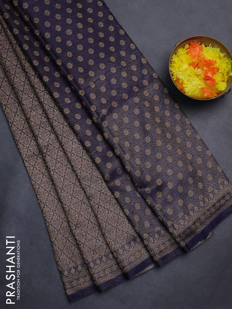 Banarasi semi silk saree navy blue with allover thread & zari woven butta weaves and woven border