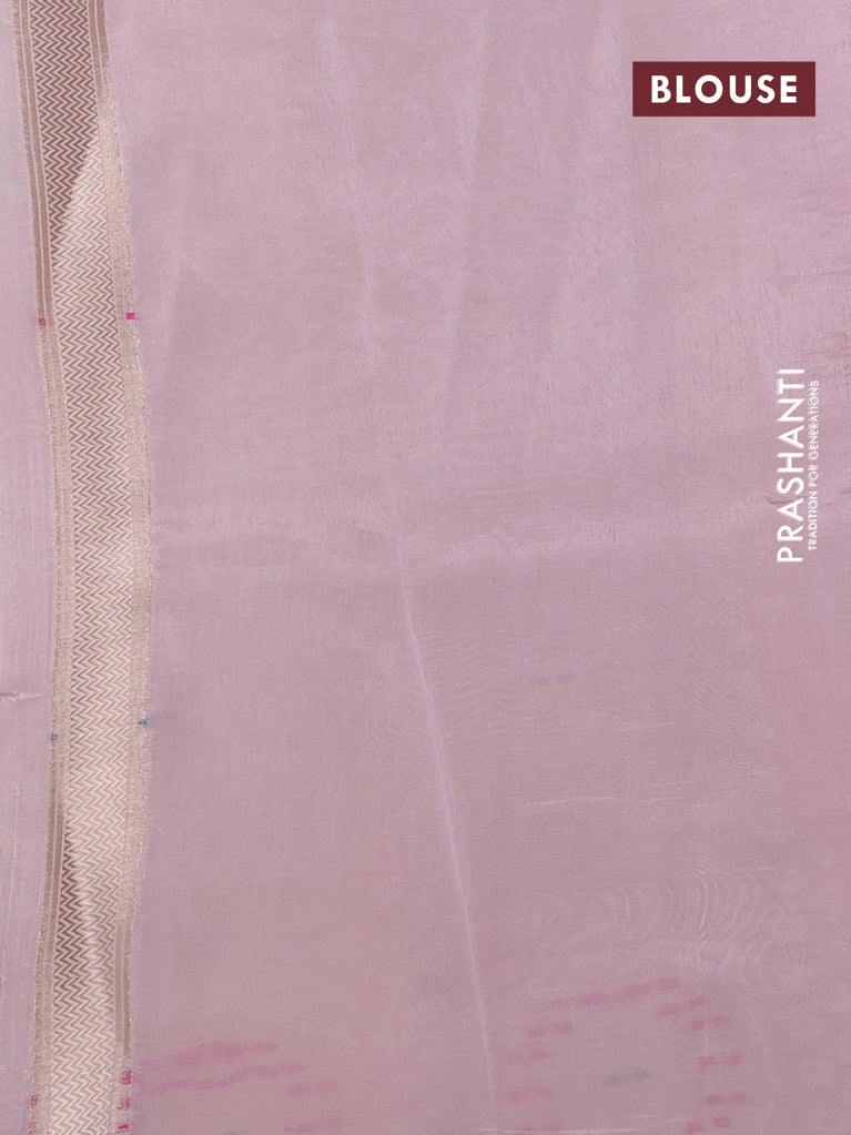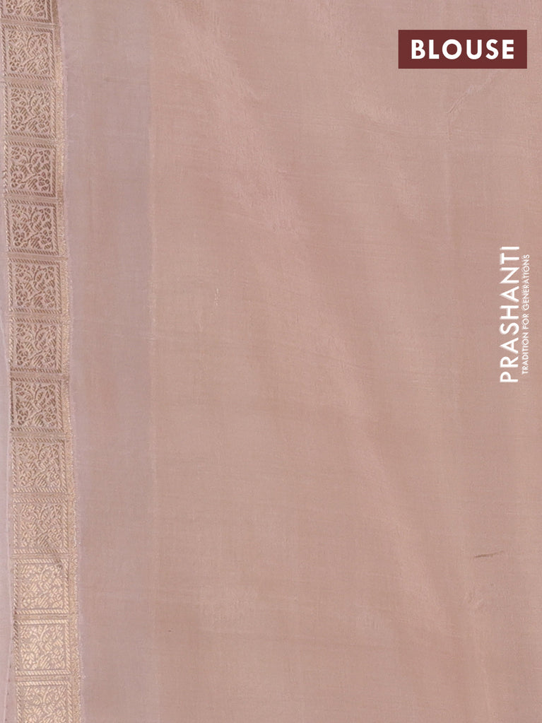 Banarasi tissue semi silk saree beige and pastel lavender with zari weaves & floral buttas and small zari woven border