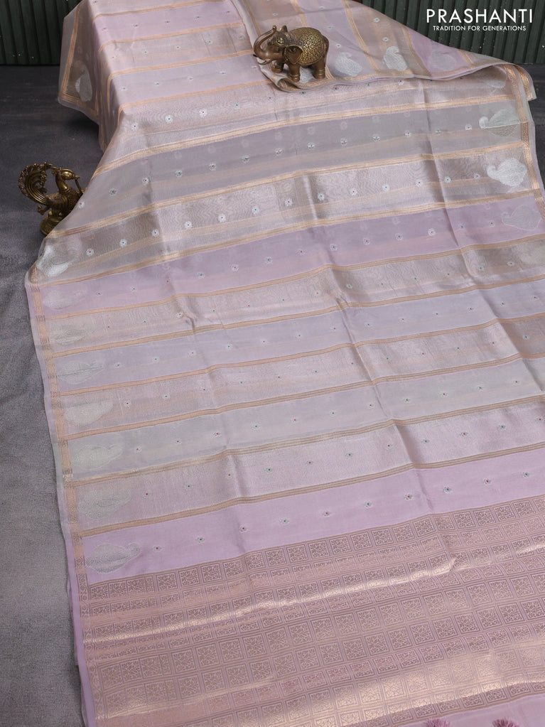 Banarasi tissue semi silk saree grey shade and pastel lavender with zari weaves & buttas and zari woven butta border