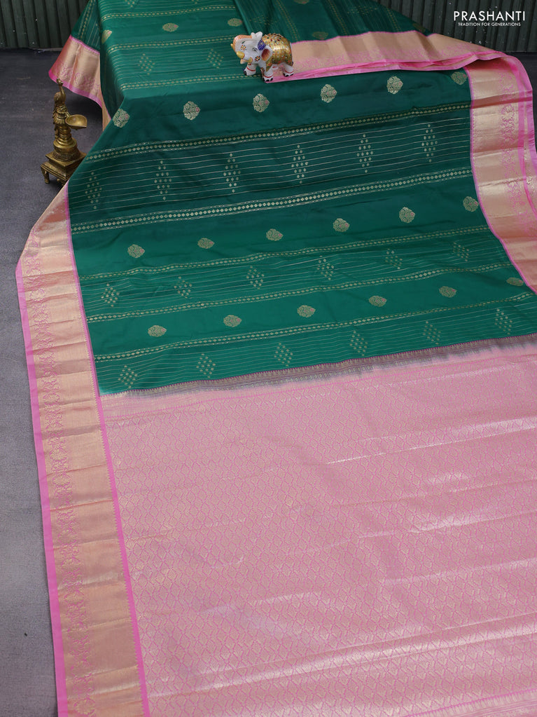 Bangalori silk saree mauve pink and green with zari woven buttas and long zari woven border