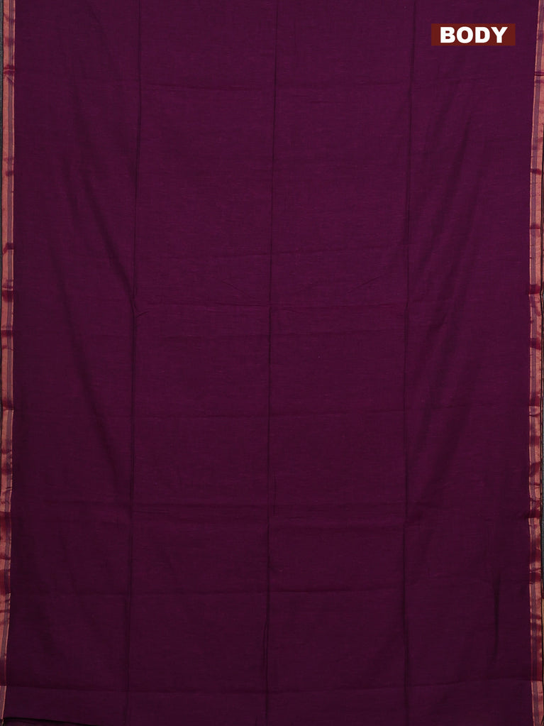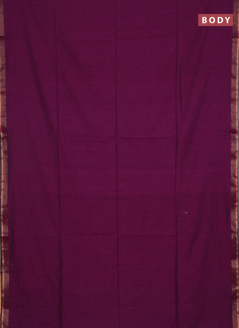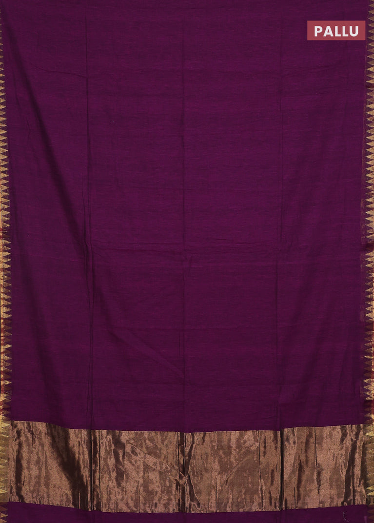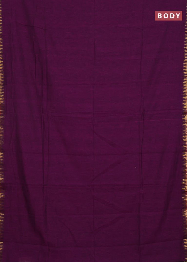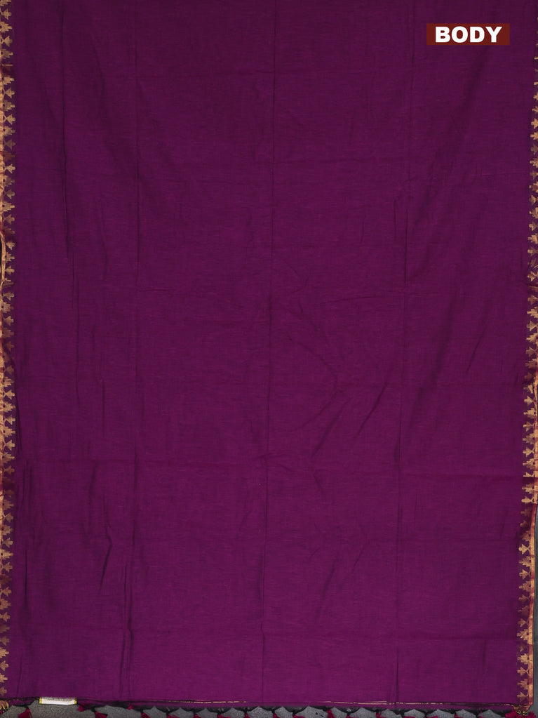 Bengal soft cotton saree purple with plain body and zari woven border