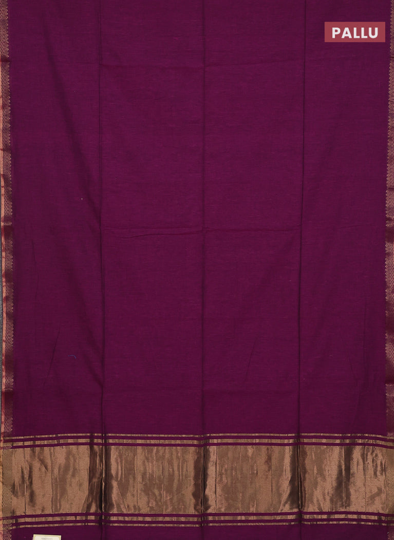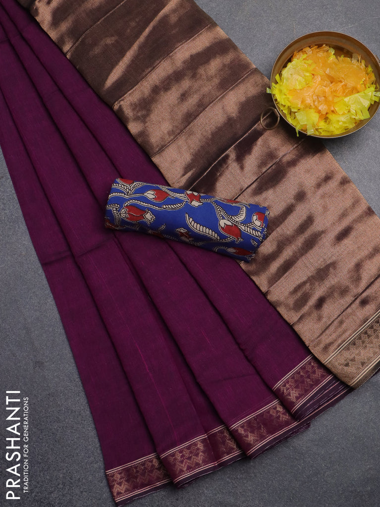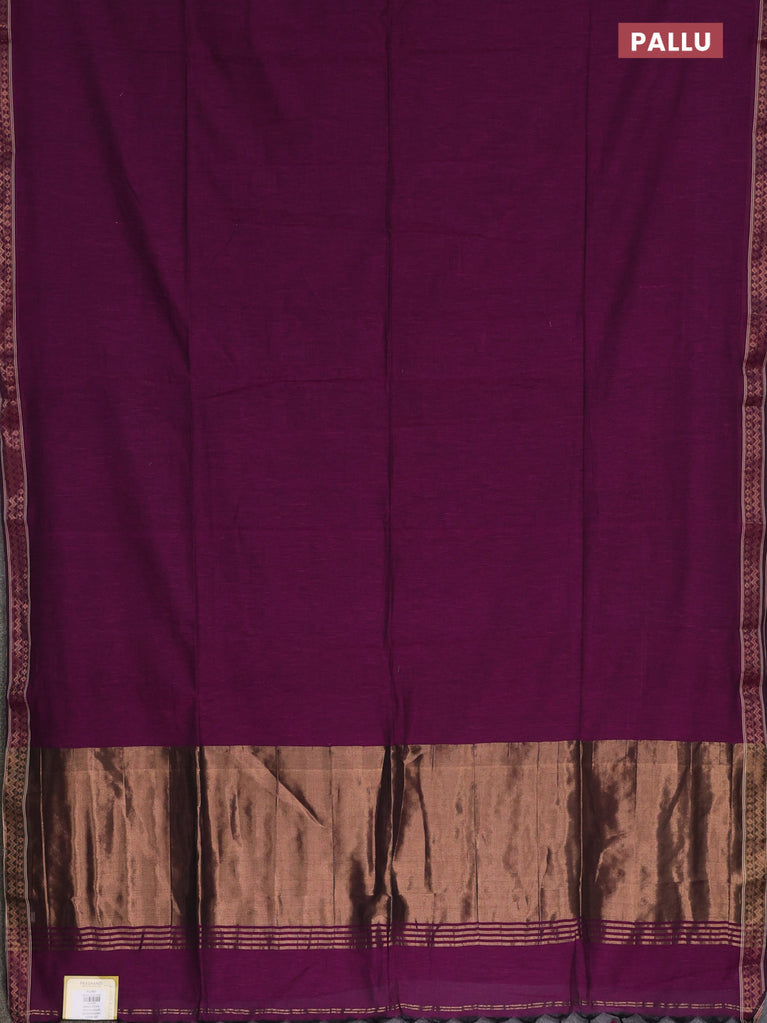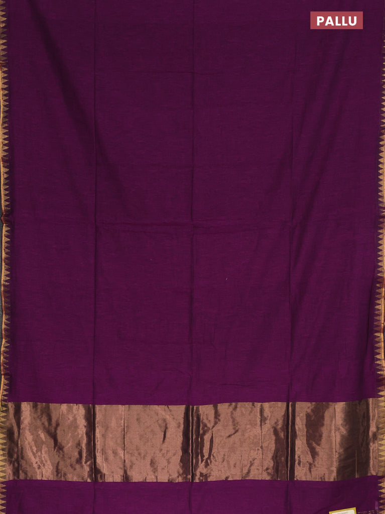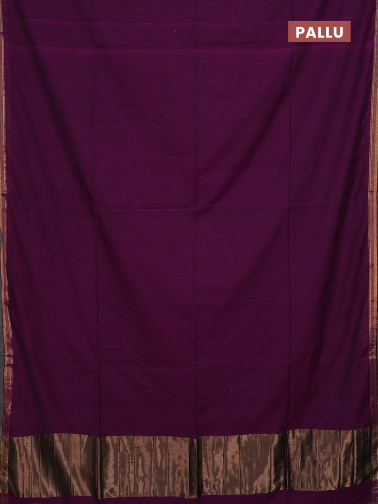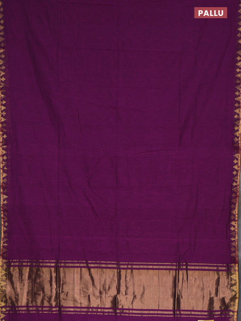 Bengal soft cotton saree purple with plain body and zari woven border
