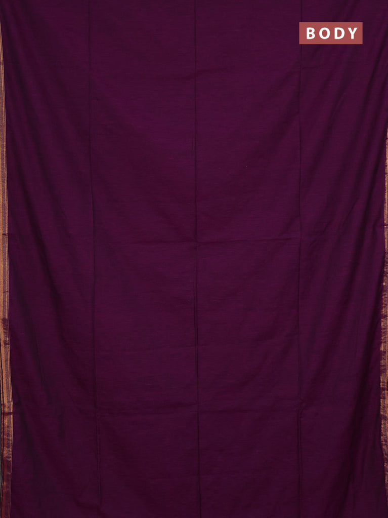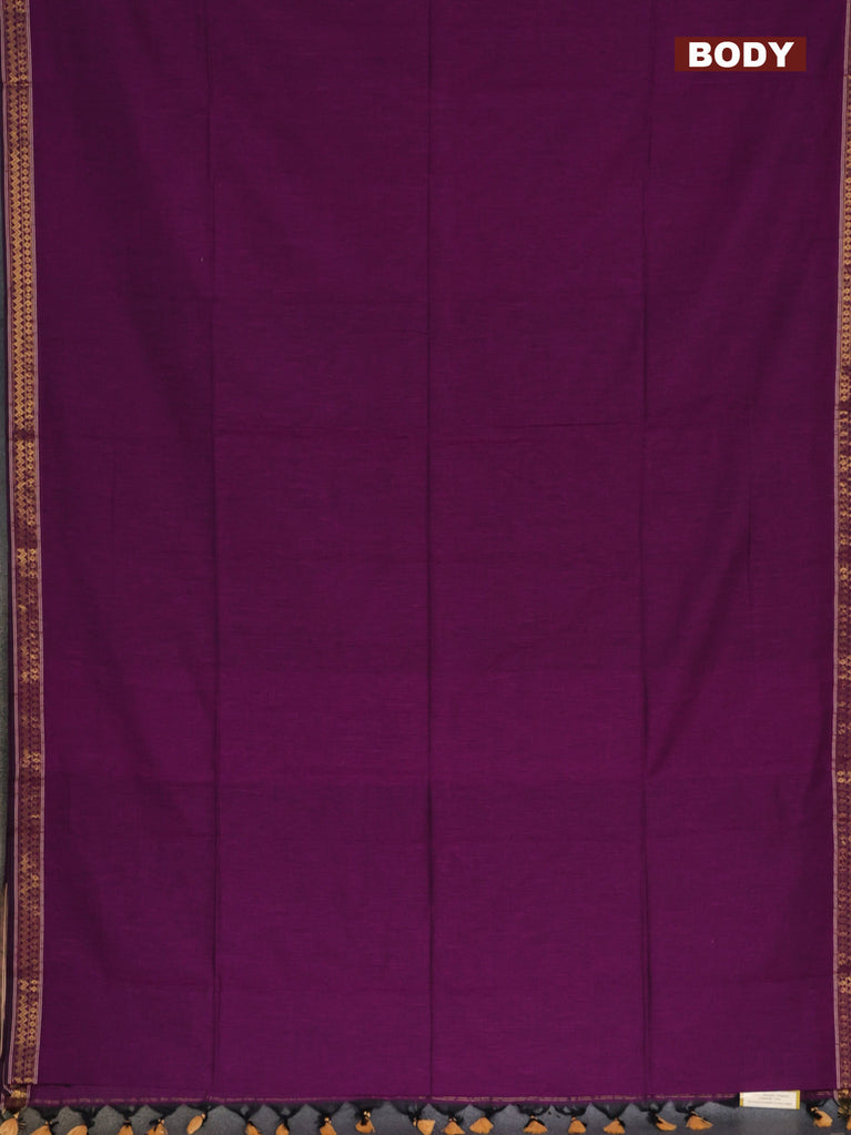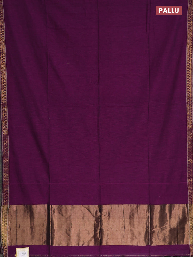 Bengal soft cotton saree purple and green with plain body and zari woven border