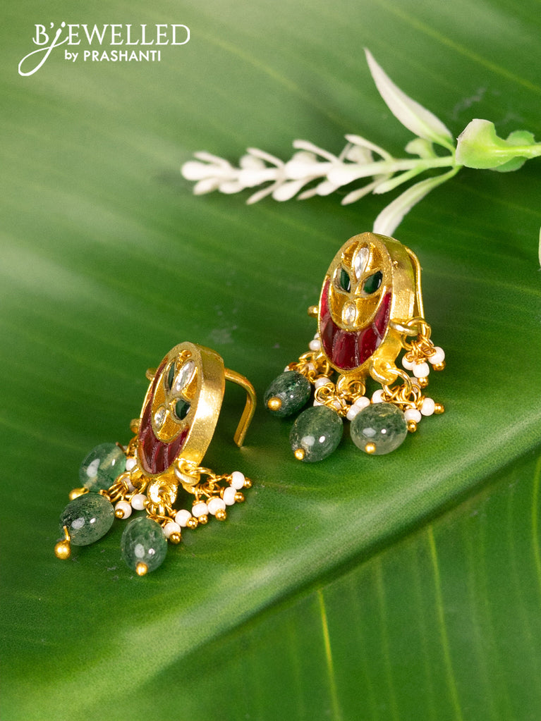 Bugadi earrings with jadau stones and pearl & beads hanging