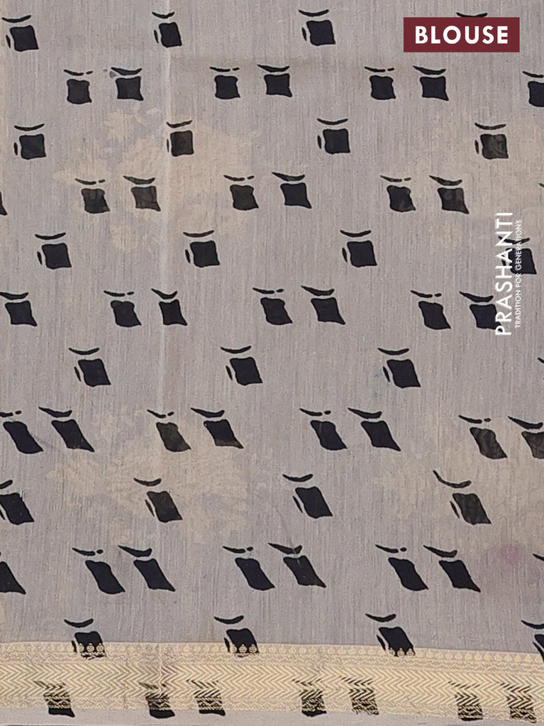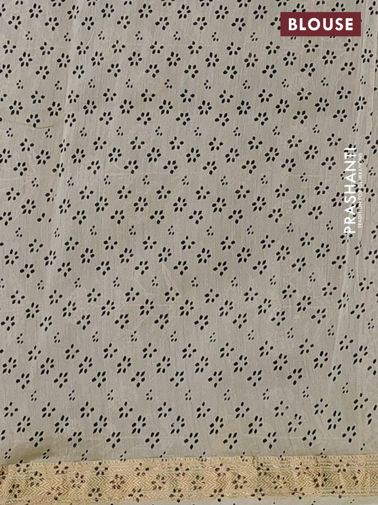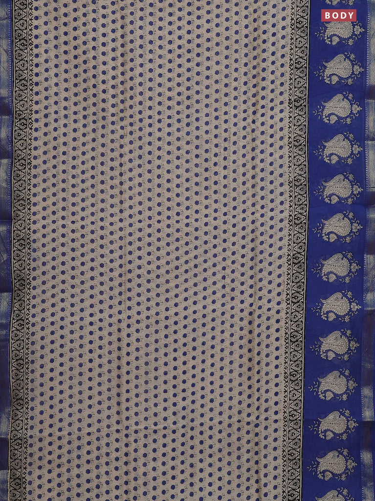 Chanderi bagru saree grey with allover dabu prints and mageshwari border
