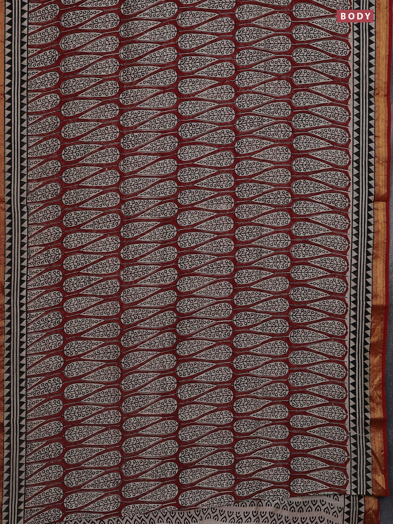 Chanderi bagru saree maroon and cream with allover prints and maheswari border