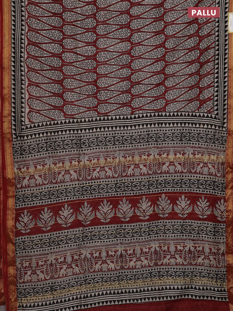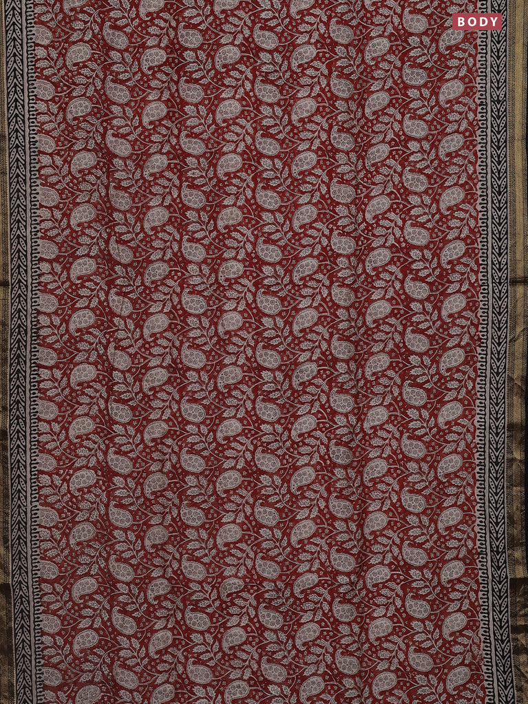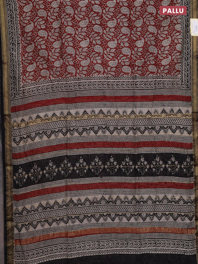 Chanderi bagru saree maroon and black with allover kalamkari prints and mageshwari border