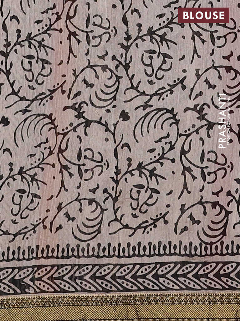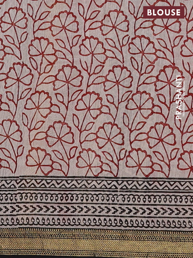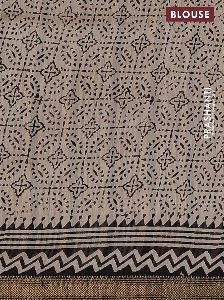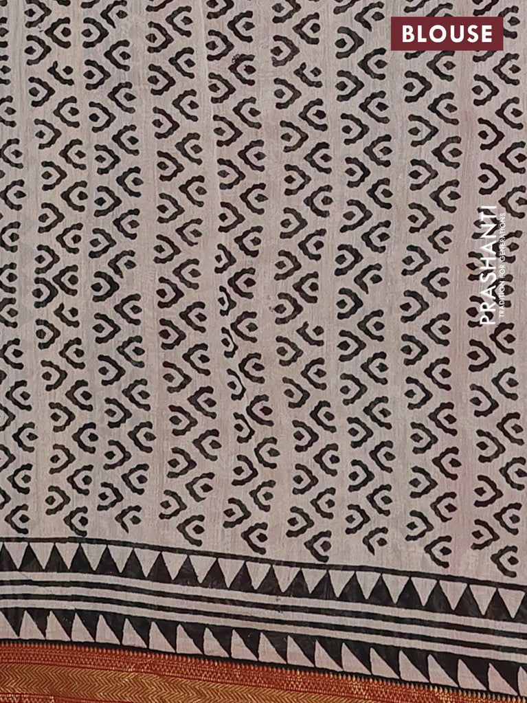 Chanderi bagru saree beige black and maroon with allover prints and small zari woven border