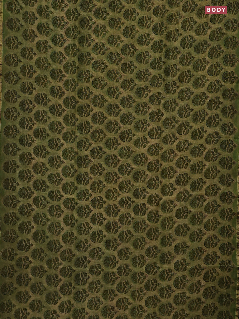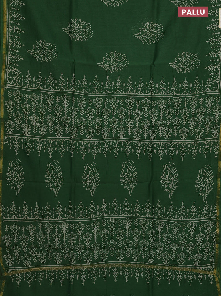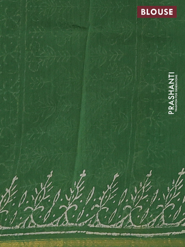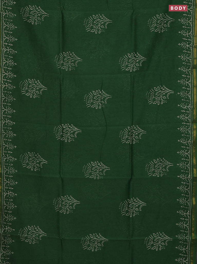 Chanderi bagru saree green with floral butta prints and small zari woven border