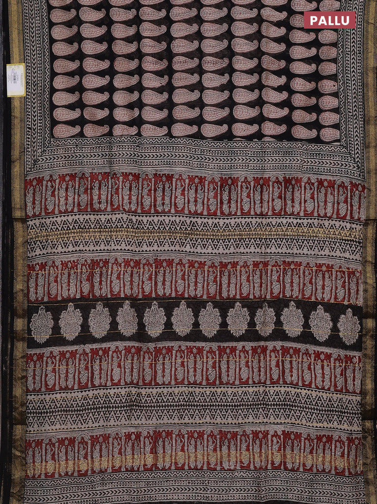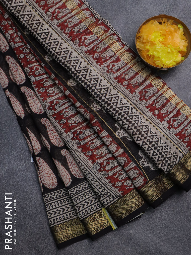 Chanderi bagru saree black and cream with allover paisley butta prints and mageshwari border