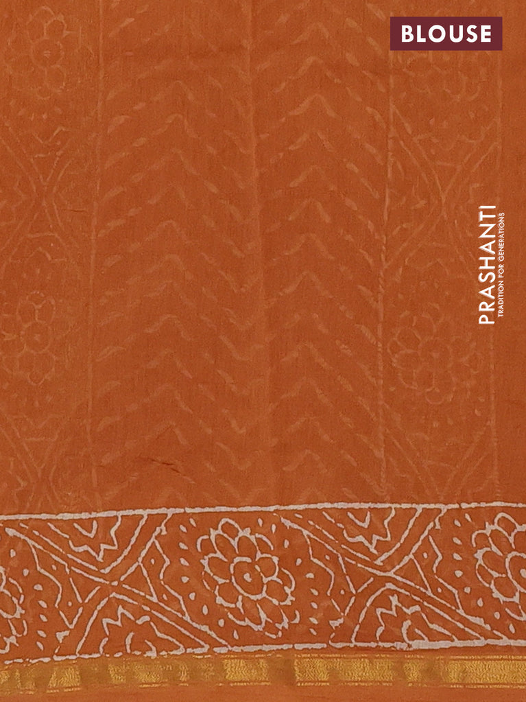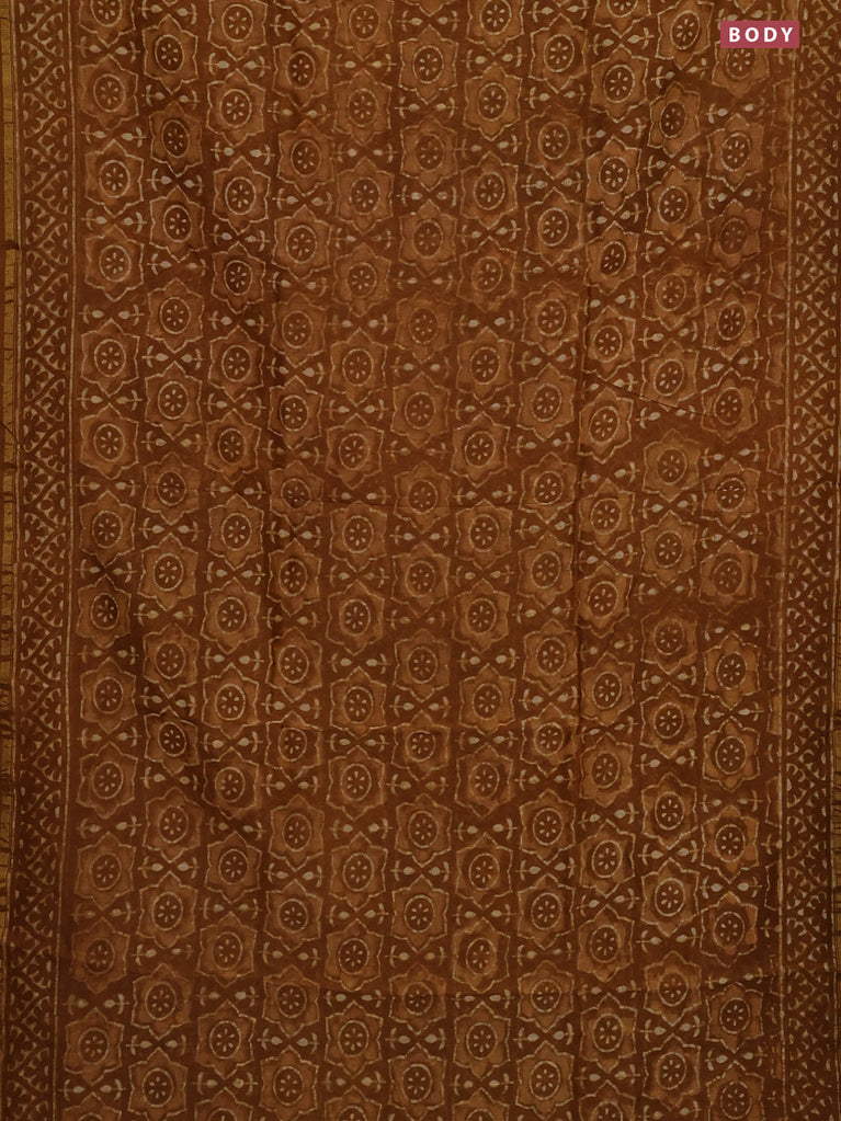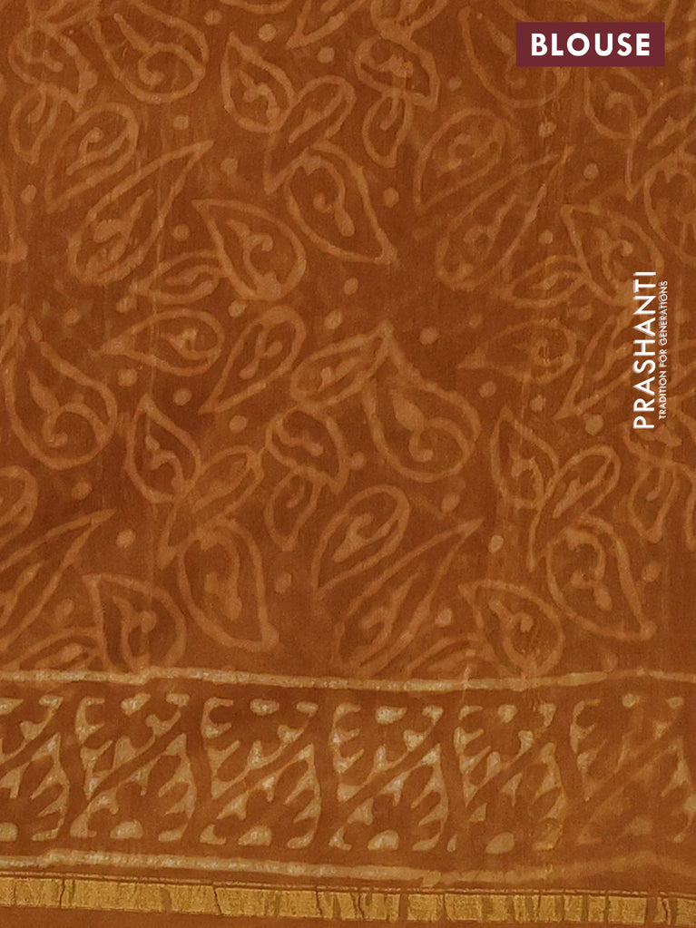 Chanderi bagru saree dark mustard with allover batik prints and small zari woven border