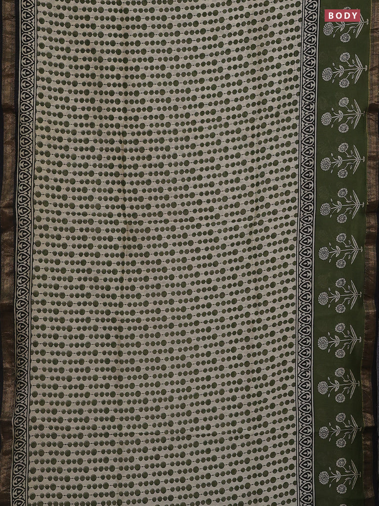 Chanderi bagru saree cream sap green and black with allover geometric prints and mageshwari border