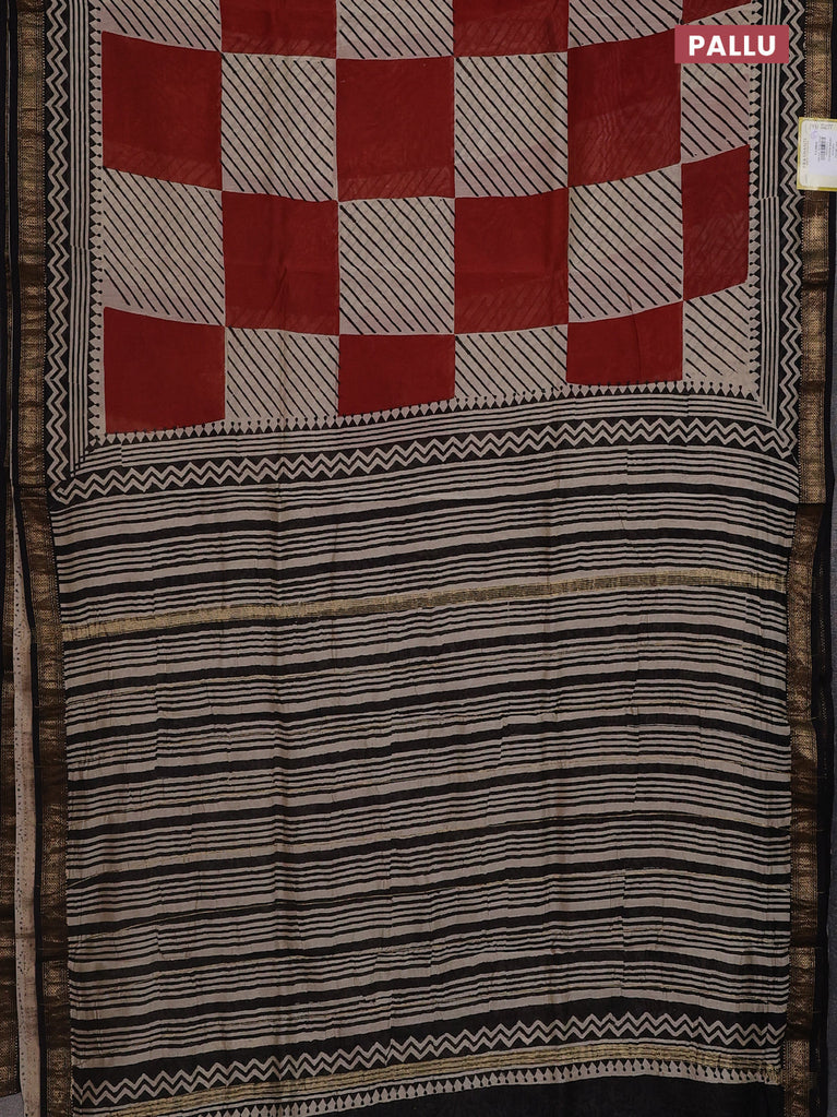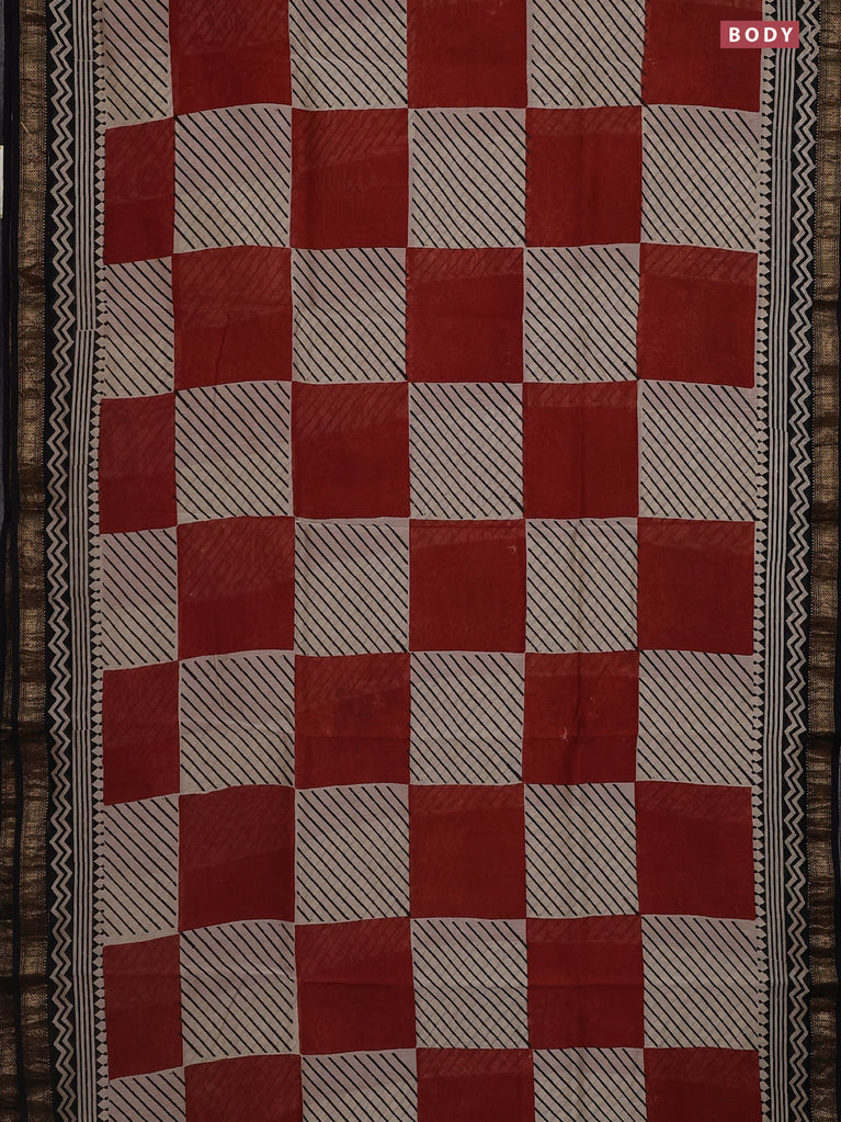 Chanderi bagru saree beige maroon and black with allover geometric box type prints and mageshwari border