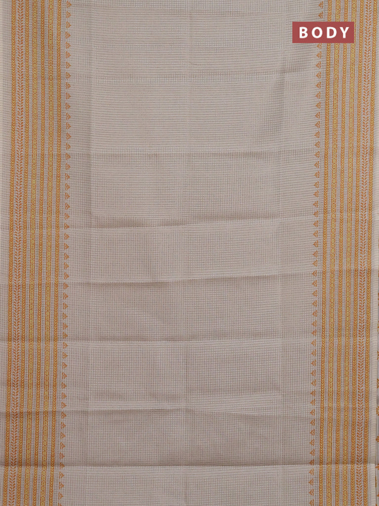Chappa saree beige and mustard shade with allover small zari checked pattern and printed border