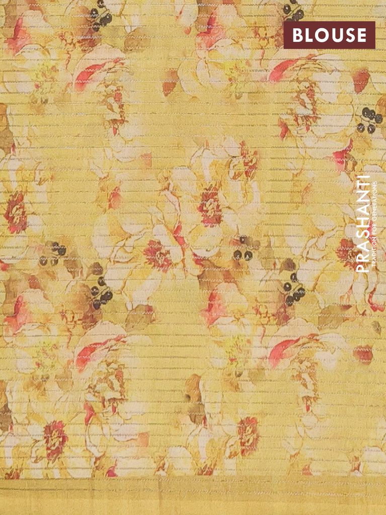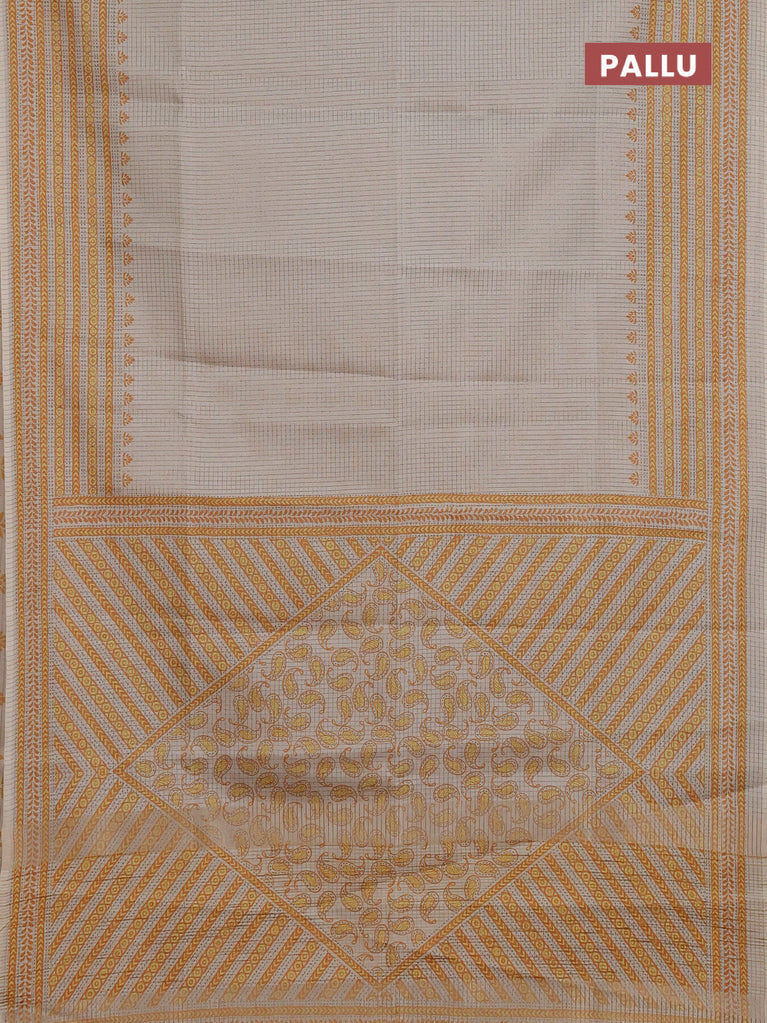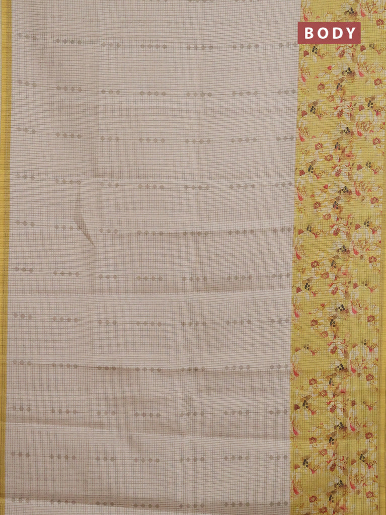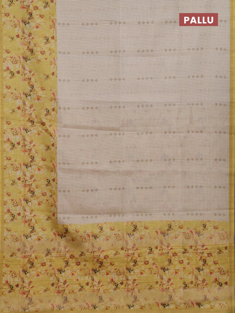 Chappa saree beige and pale yellow with allover small zari checked pattern and floral digital printed pallu