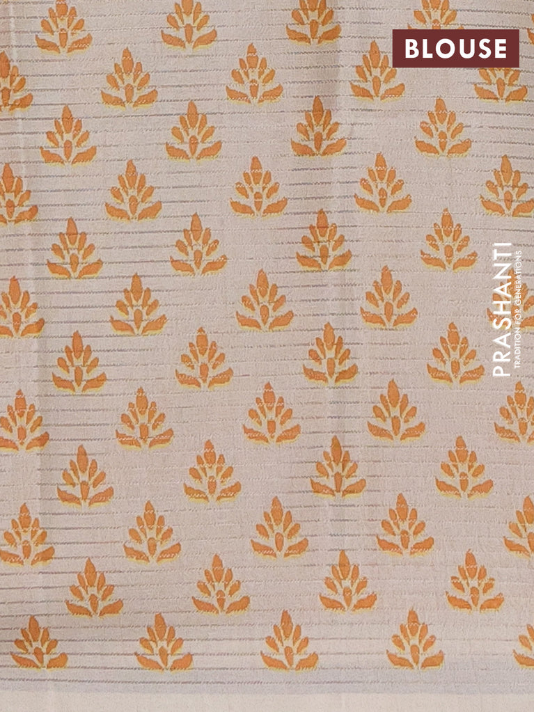 Chappa saree beige and purple with allover small zari checked pattern and printed border