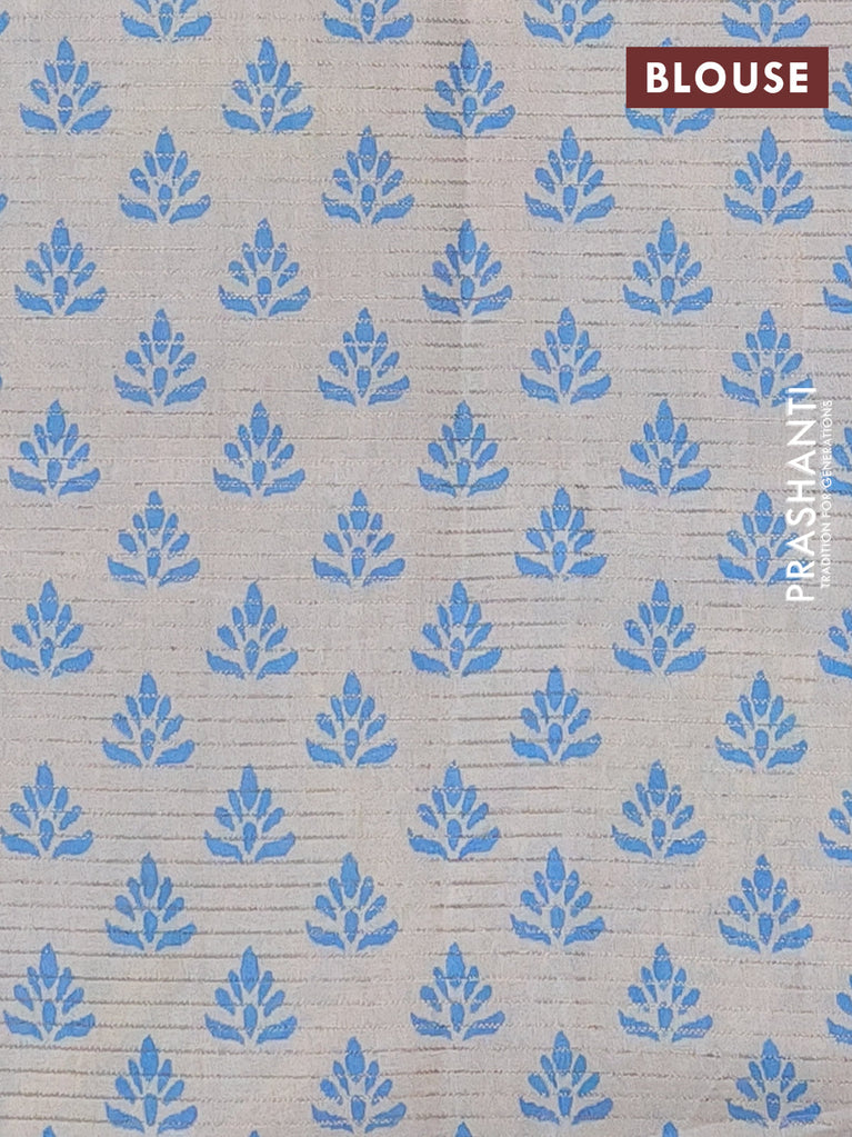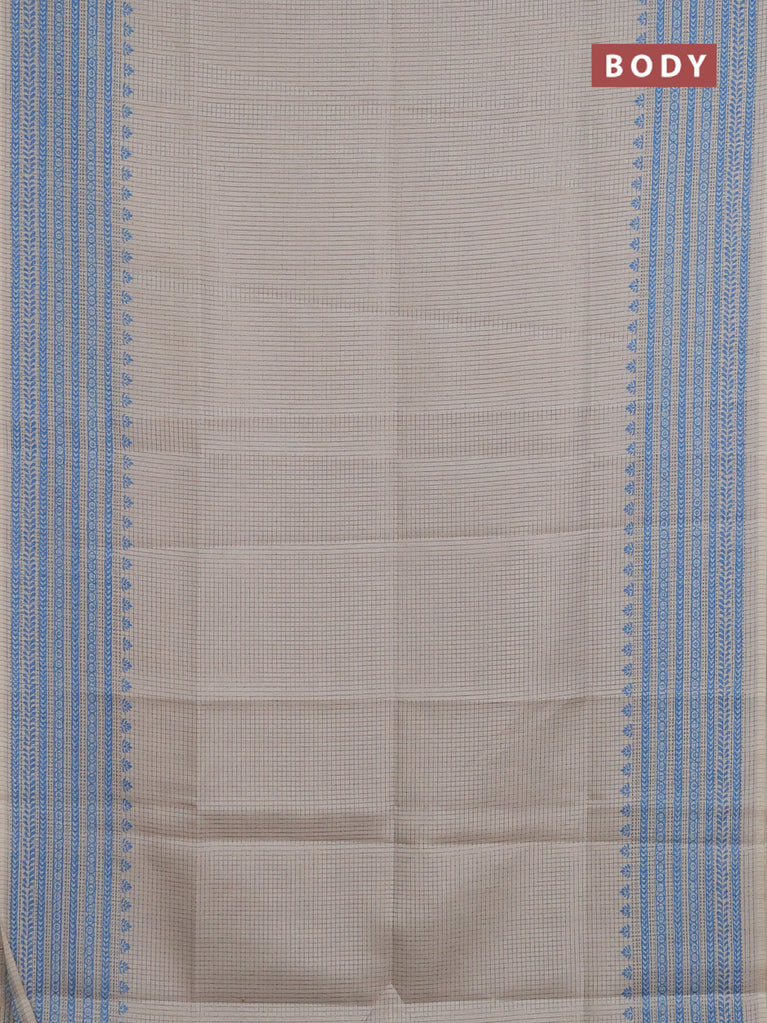 Chappa saree beige and cs blue with allover small zari checked pattern and printed border