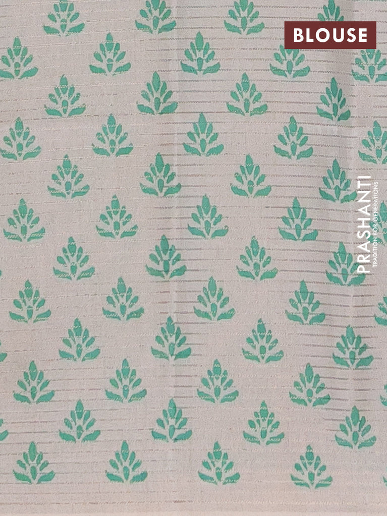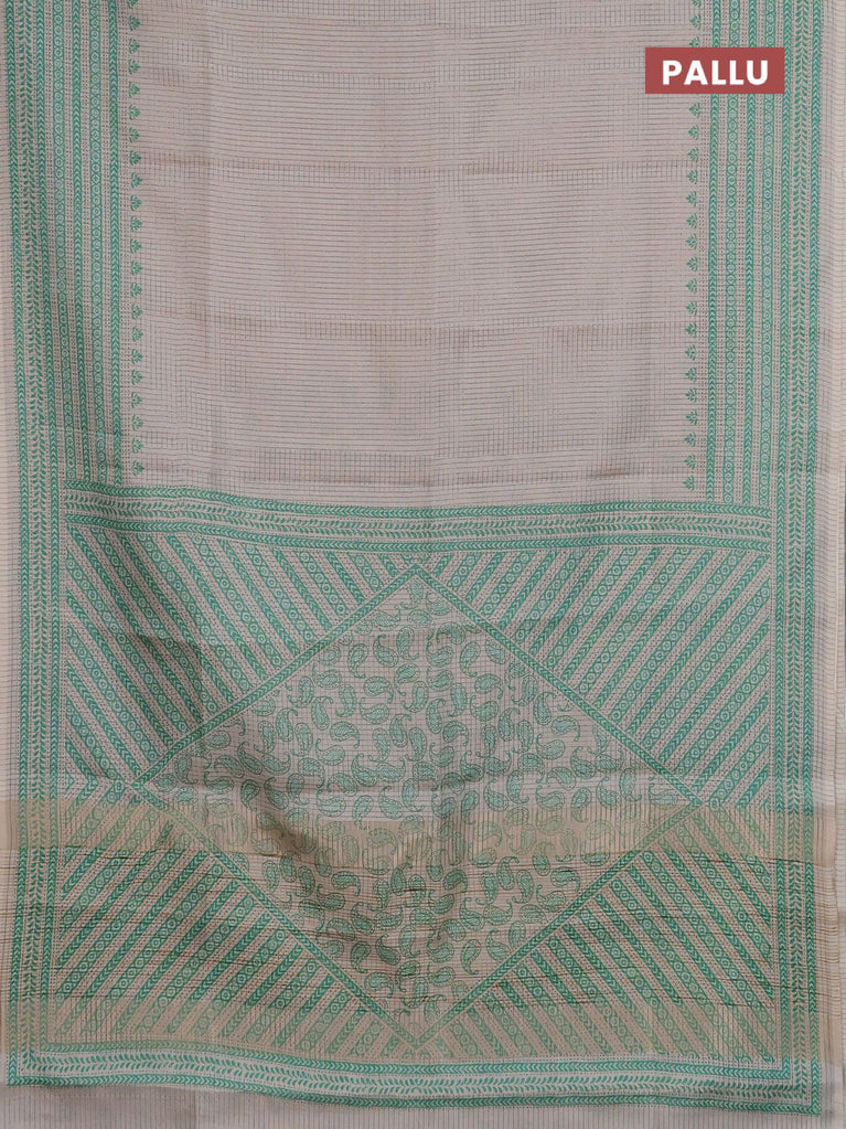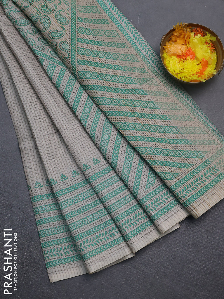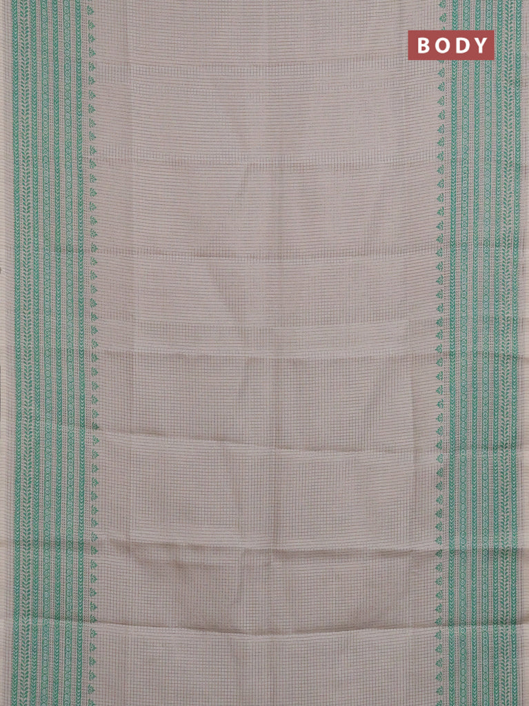 Chappa saree beige and teal green with allover small zari checked pattern and printed border