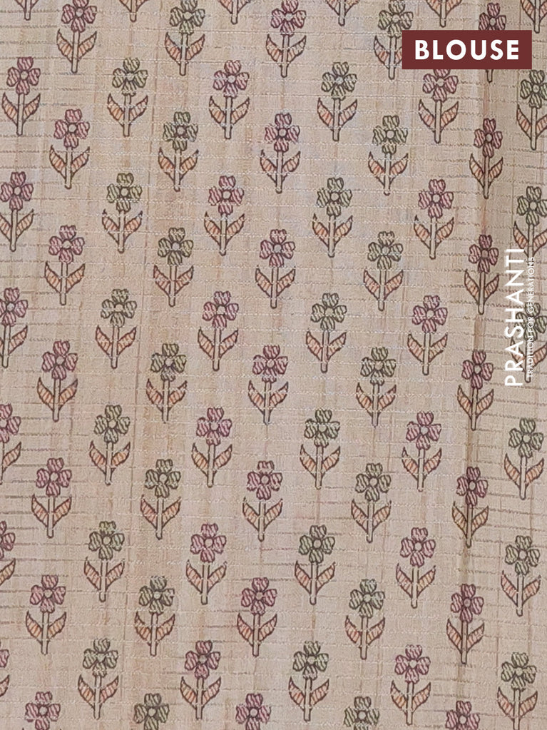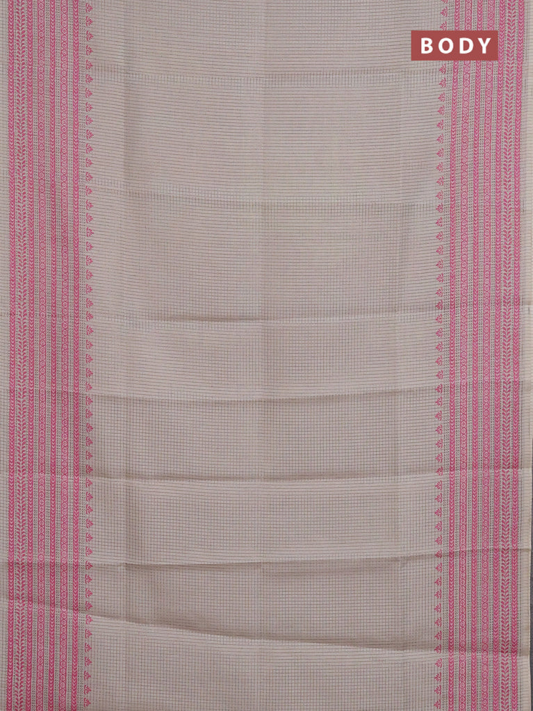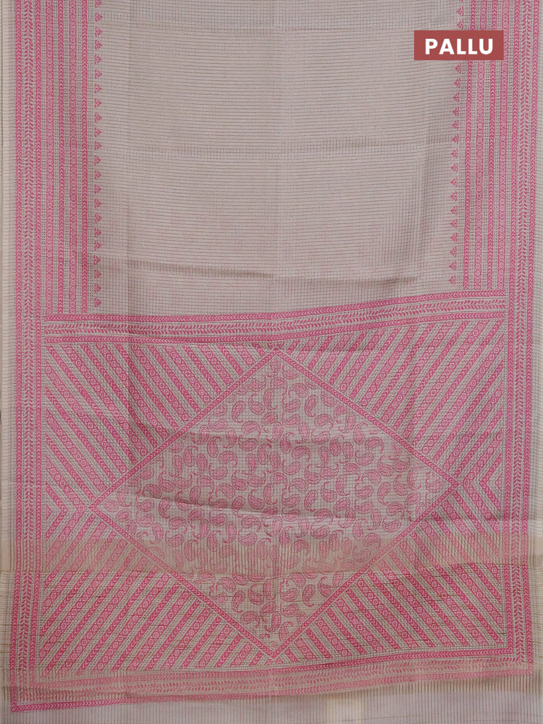 Chappa saree beige and pink with allover small zari checked pattern and printed border