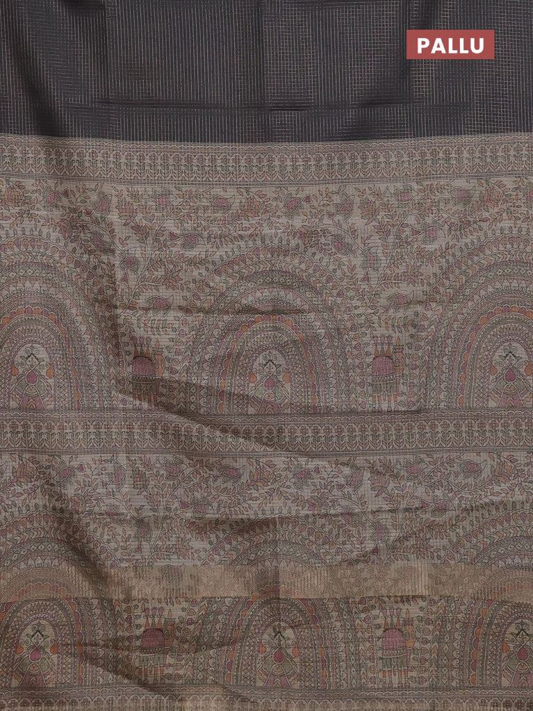 Chappa saree black and beige with allover small zari checked pattern and madhubani printed pallu