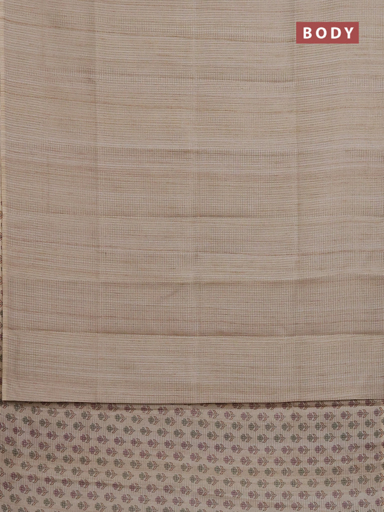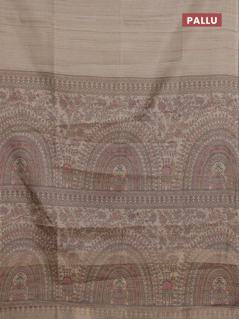Chappa saree beige with allover small zari checked pattern and madhubani printed pallu