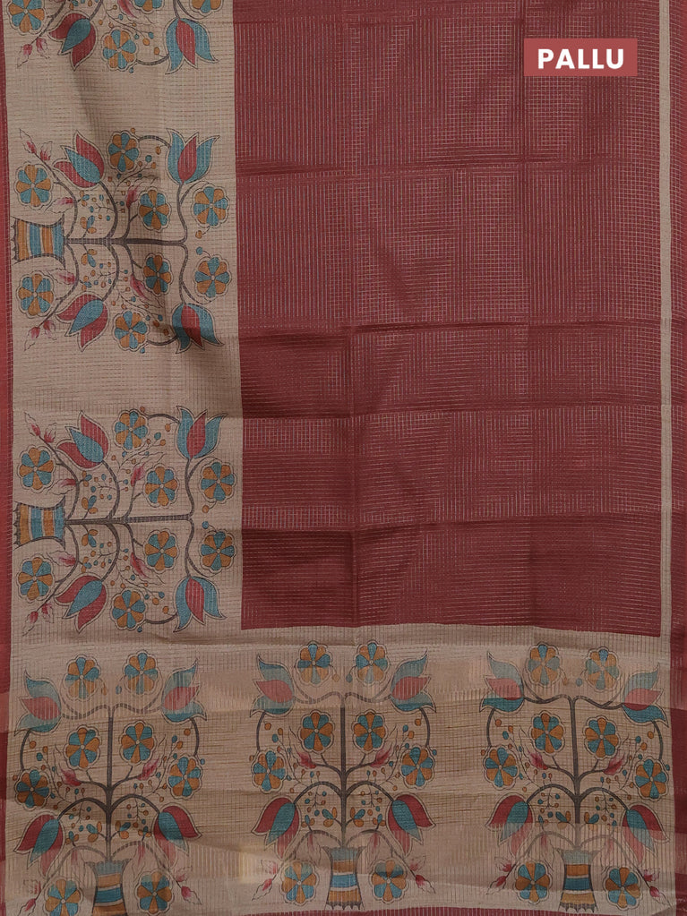 Chappa saree brown and beige with allover small zari checked pattern and madhubani printed pallu