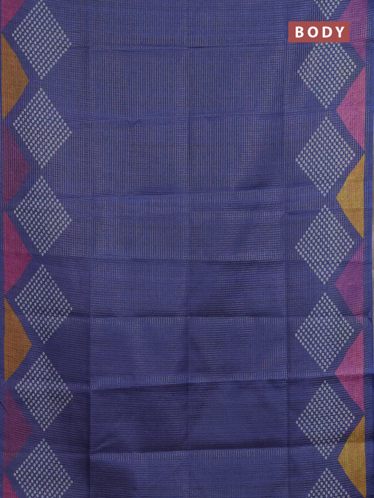Chappa saree dark mustard and blue with allover small zari checked pattern & prints and piping border