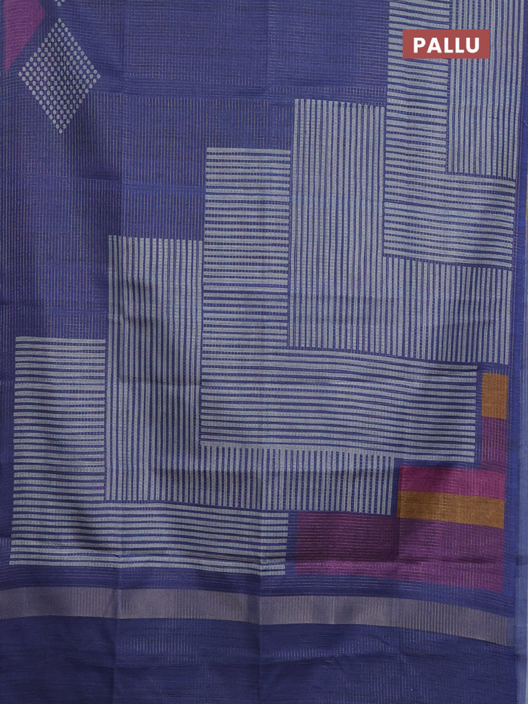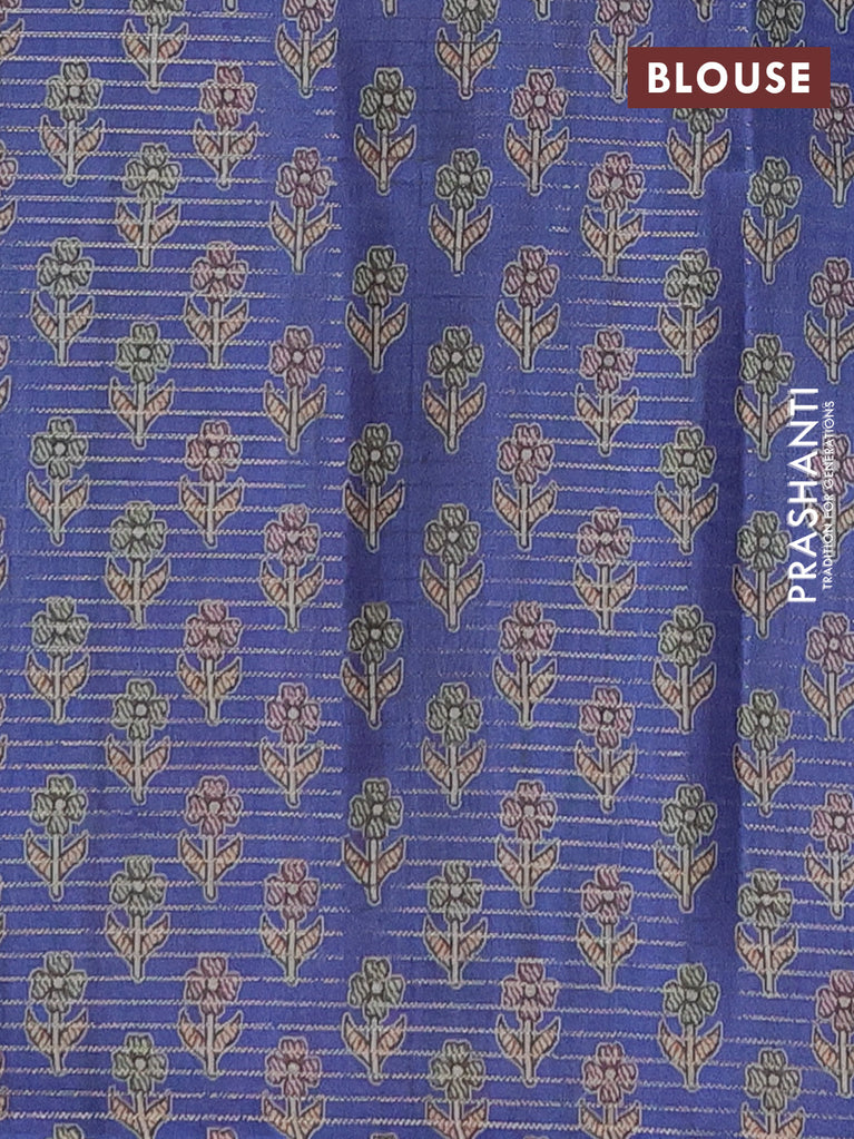 Chappa saree dark blue and beige with allover small zari checked pattern and floral digital printed pallu