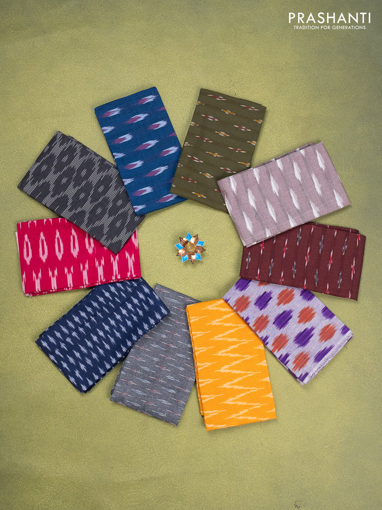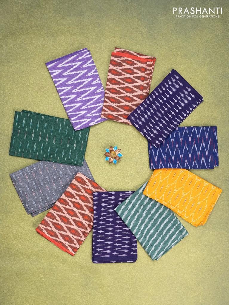 Ikat cotton blouse bits multi colour and multi design Pack of 10