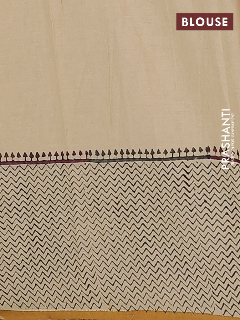 Jaipur cotton saree beige and marron with allover kalamkari prints and printed border