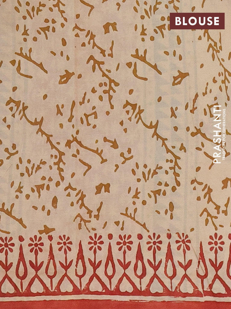 Jaipur cotton saree beige blue and maroon with allover kalamkari prints and printed border
