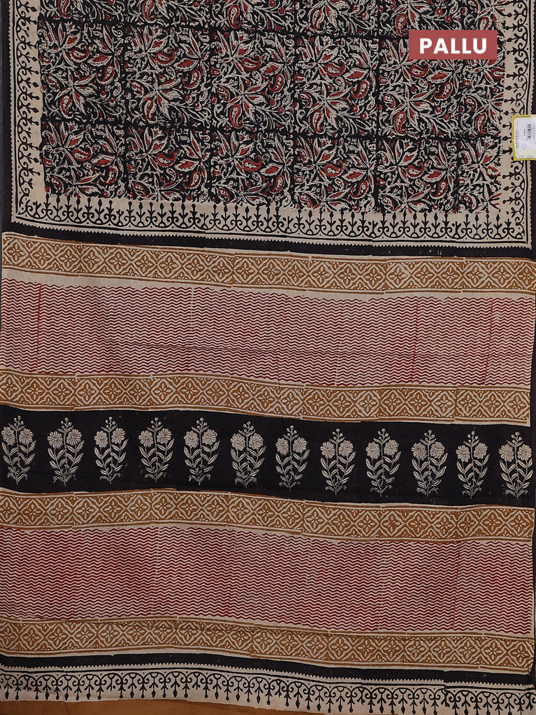 Jaipur cotton saree black and beige rust shade with allover kalamkari prints and printed border