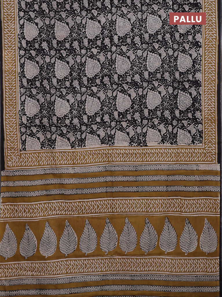 Jaipur cotton saree black with allover kalamkari prints and printed border