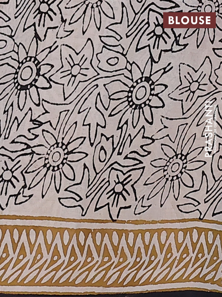 Jaipur cotton saree beige black and marron with allover paisley prints and printed border