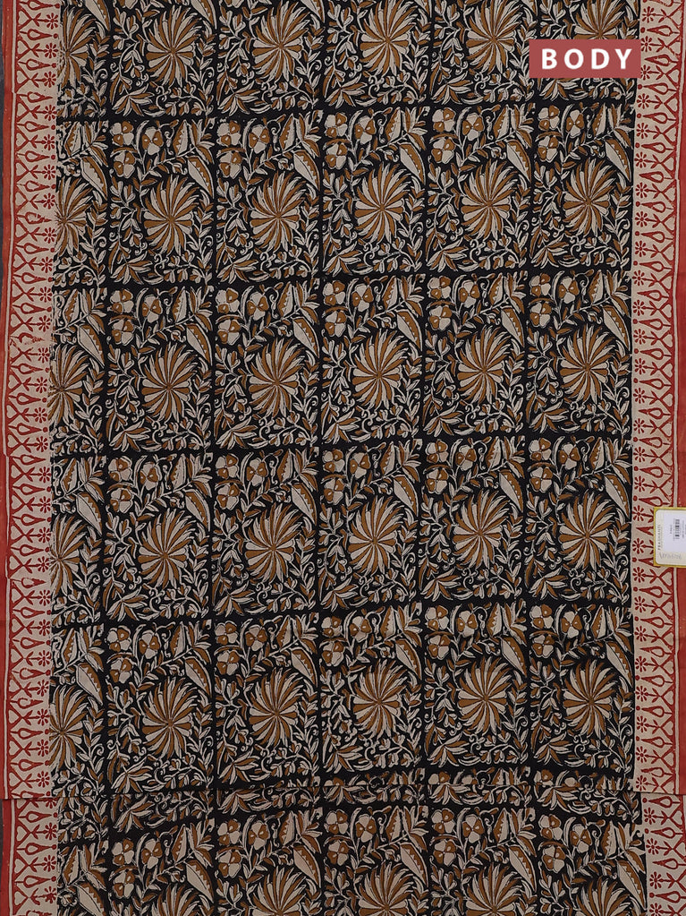 Jaipur cotton saree black and marron with allover kalamkari prints and printed border